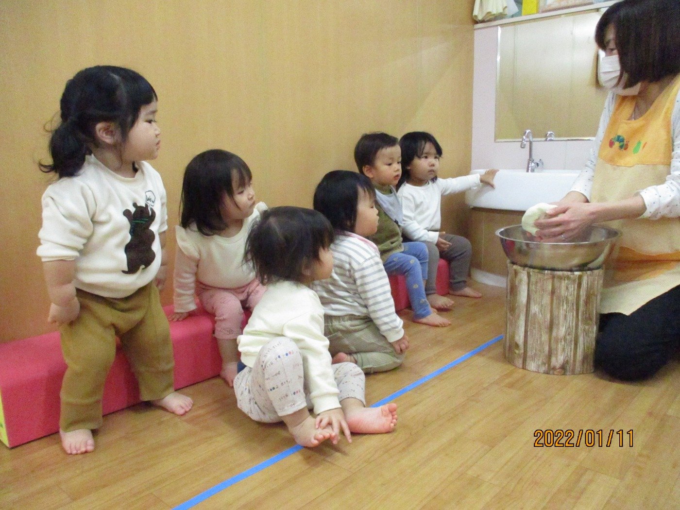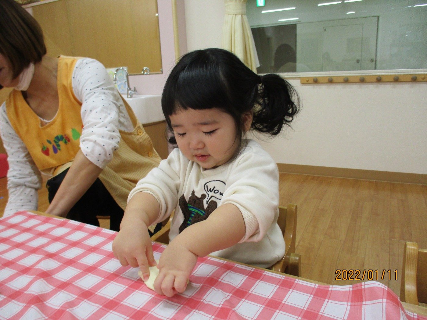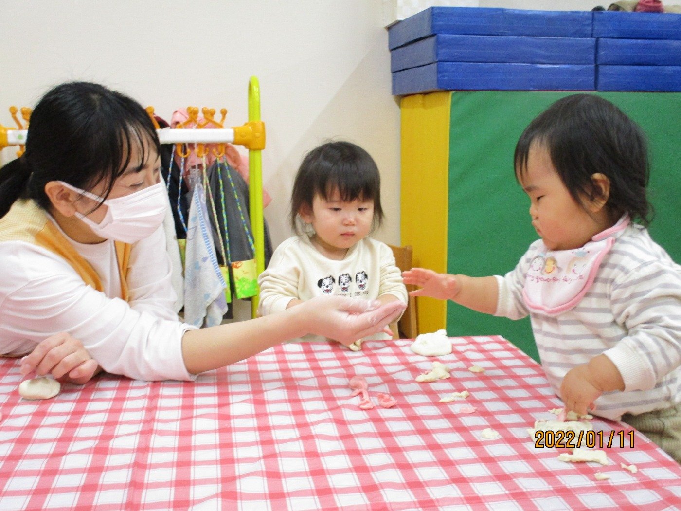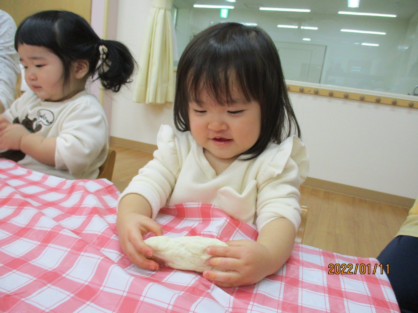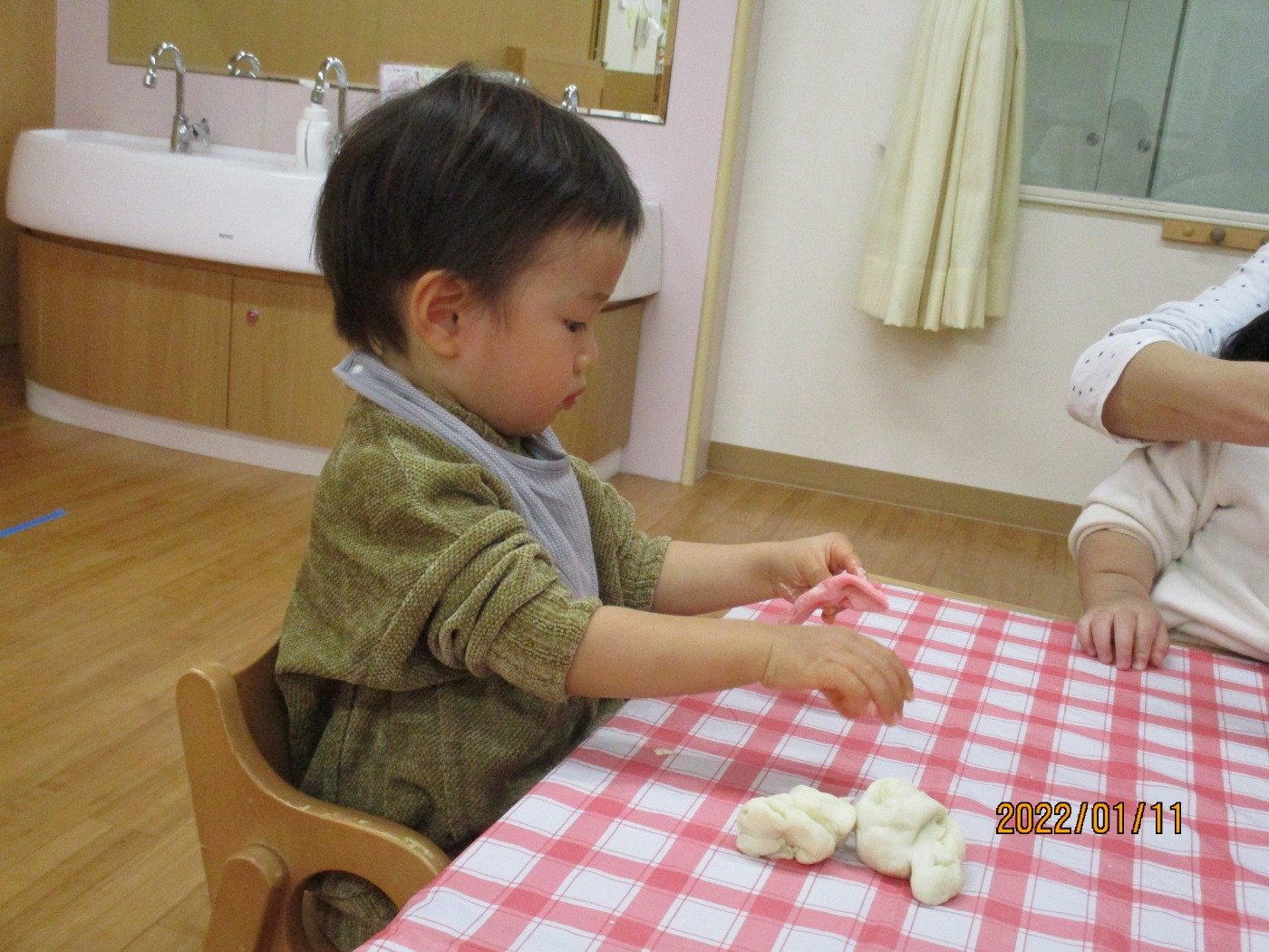 小麦粉でお餅を作って、感触も感じてお正月遊びに