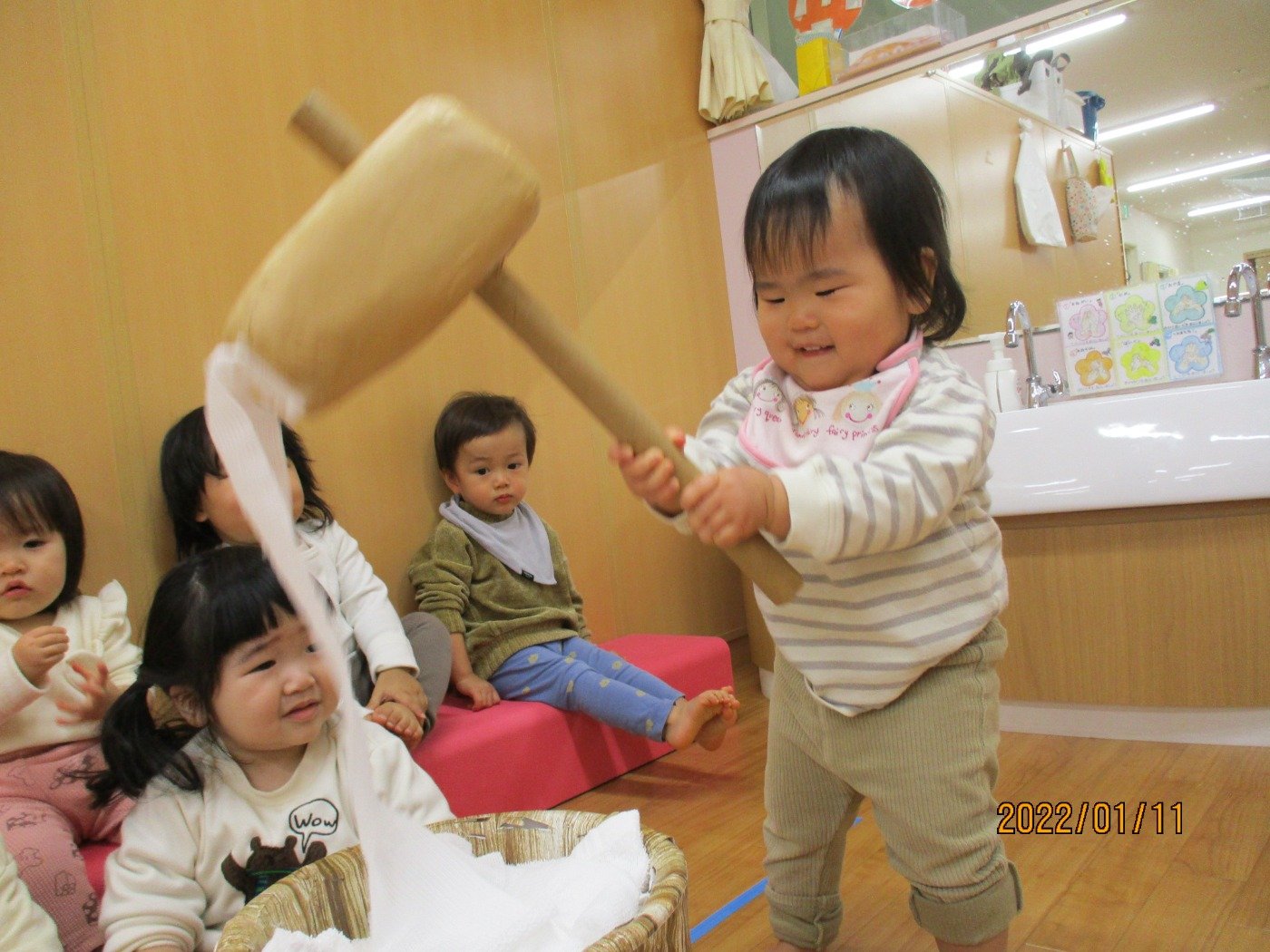 お餅つきも上手に、「ぺったん」「ぺったん」