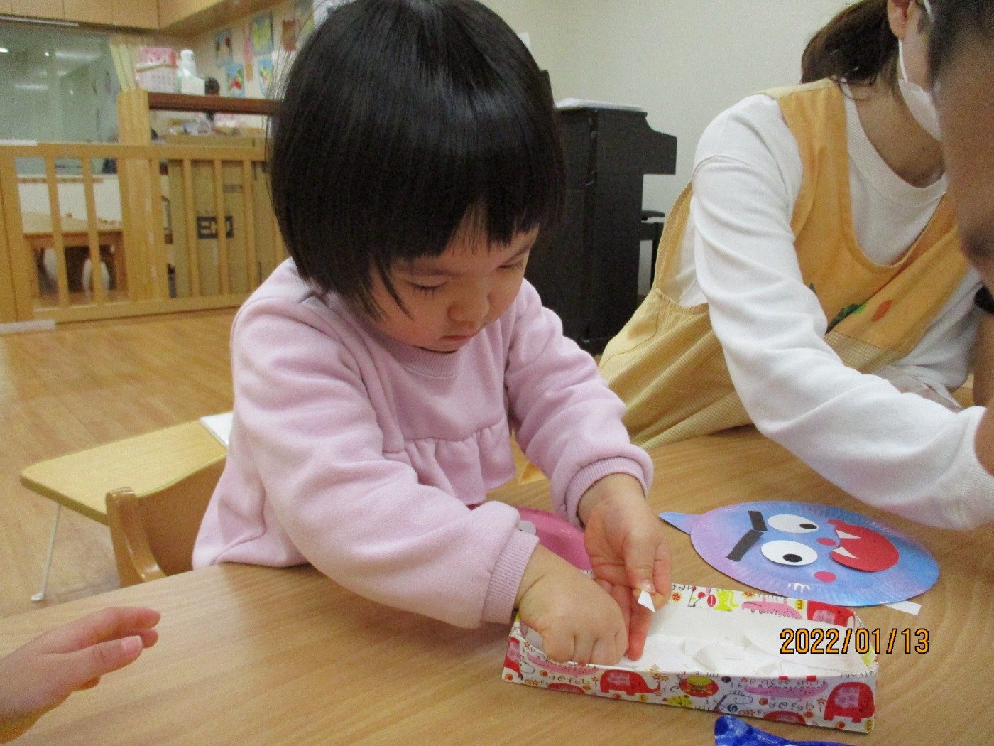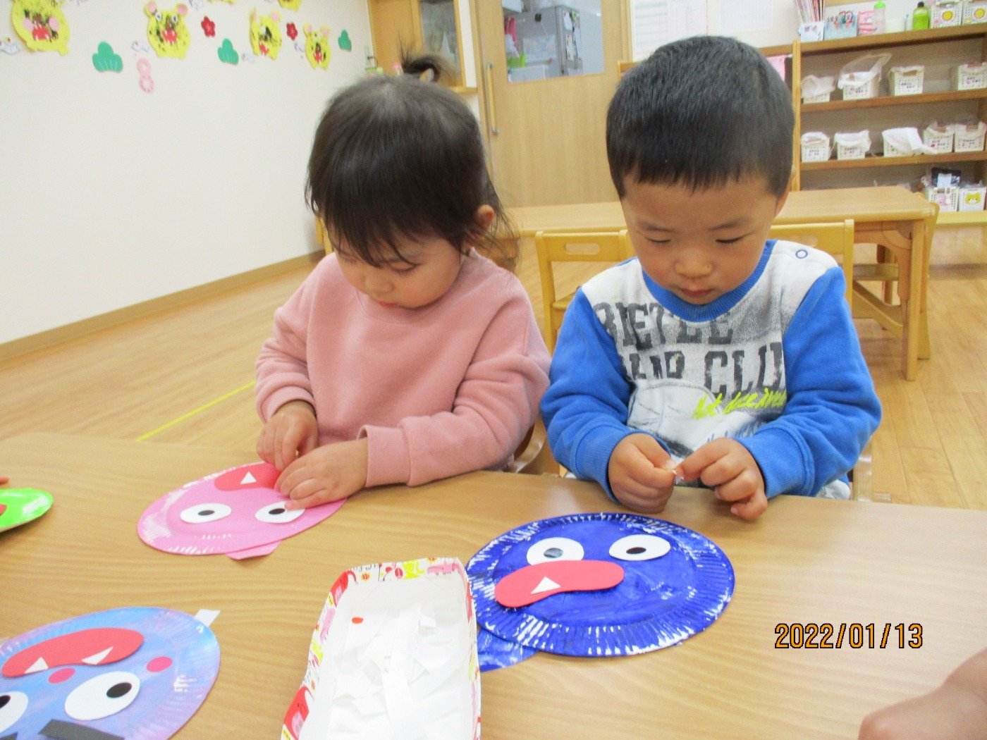 今日のあそび ホームブログ 2022.01.13 今日は、とっても風が冷たいですが子ども達は元気いっぱい!! お散歩に出発です♪ 寒さの中にも季節の自然物も発見できるので子ども達も 探索活動に夢中😊 子ども達の興味の視線はとっても素敵な空間。。。 寒さの厳しい季節ですが、ぜひ公園などで一緒に 季節ならでは自然物を発見してみてくださいね。 1歳のうさぎぐみさんは、制作で「おに」を作っていました。 もうすぐ節分、今年はどんな「おに」が保育園にきてくれるのでしょうか?笑