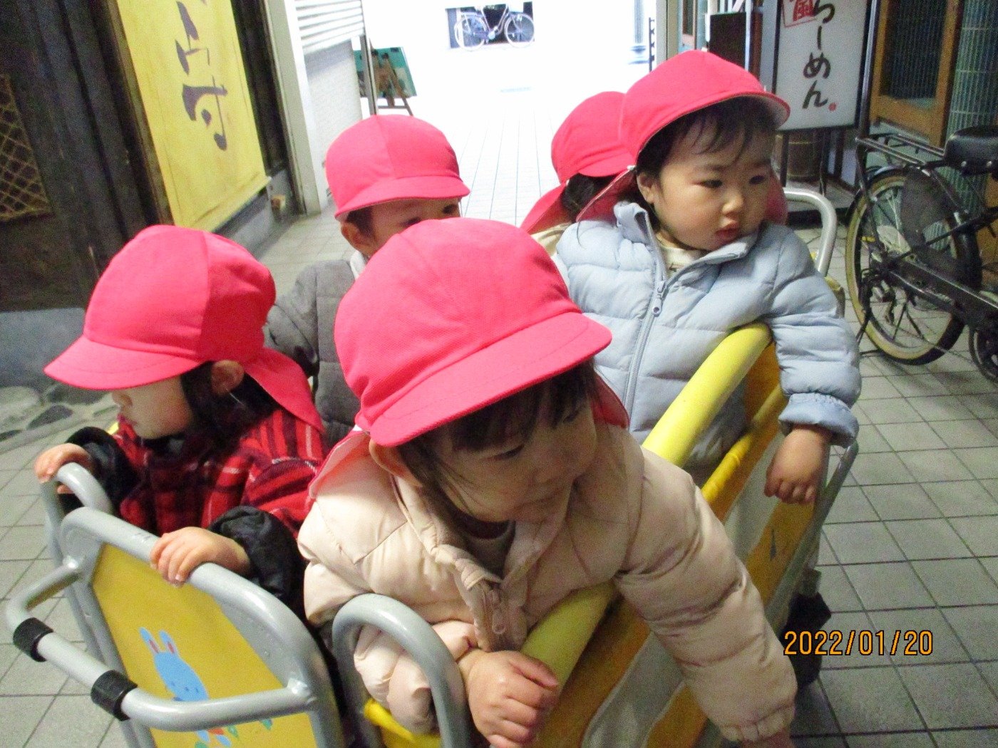 にじぐみさん ホームブログ 2022.01.20 にじぐみさん お友だちとお散歩に出発!! 元気よく、お友だちや先生と手を繋いで商店街まで探索♪ 子ども達の目線は大人が見える世界とはかなり違います。 お散歩での探索も、子ども達にとっては初めましてが たくさんです。 子ども達の はじめましてを大切にしてこれからも過ごしていきたいと思います。
