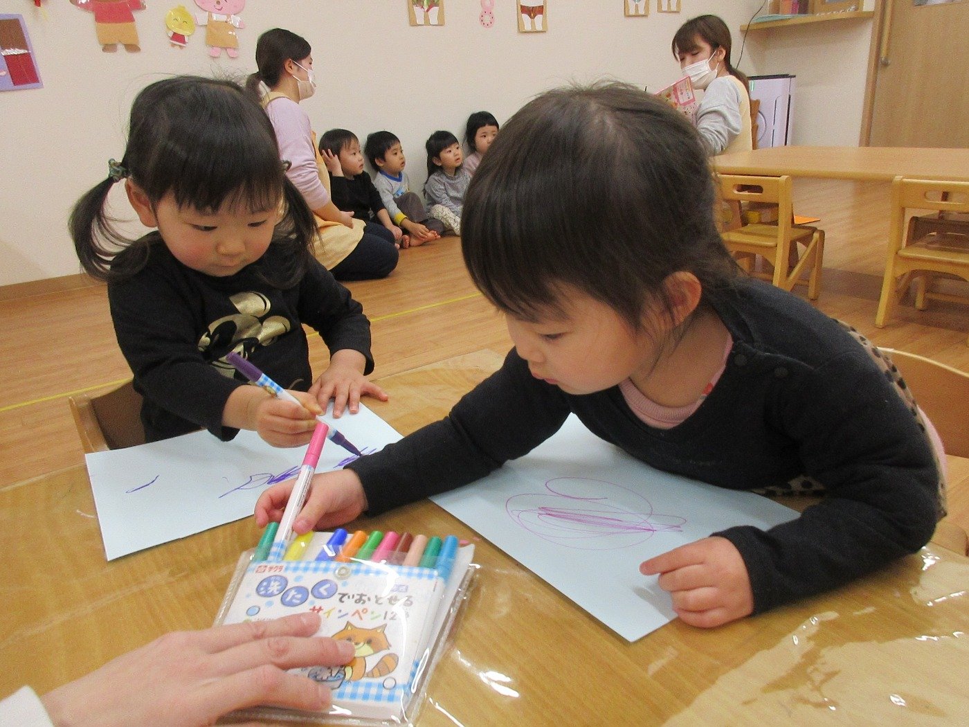 子ども達はペンで