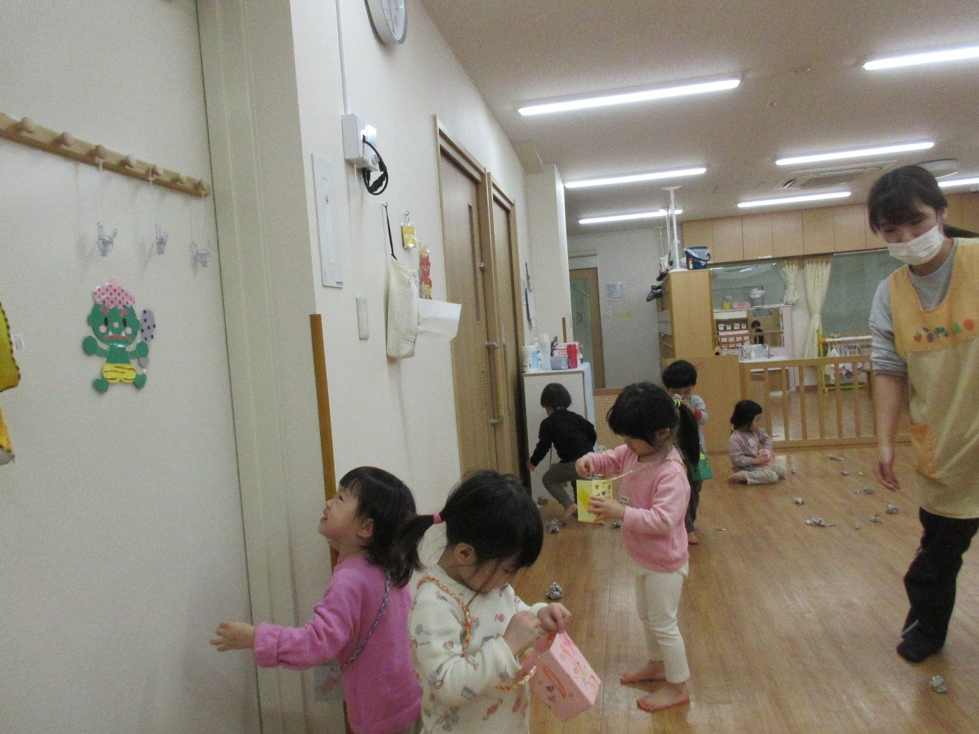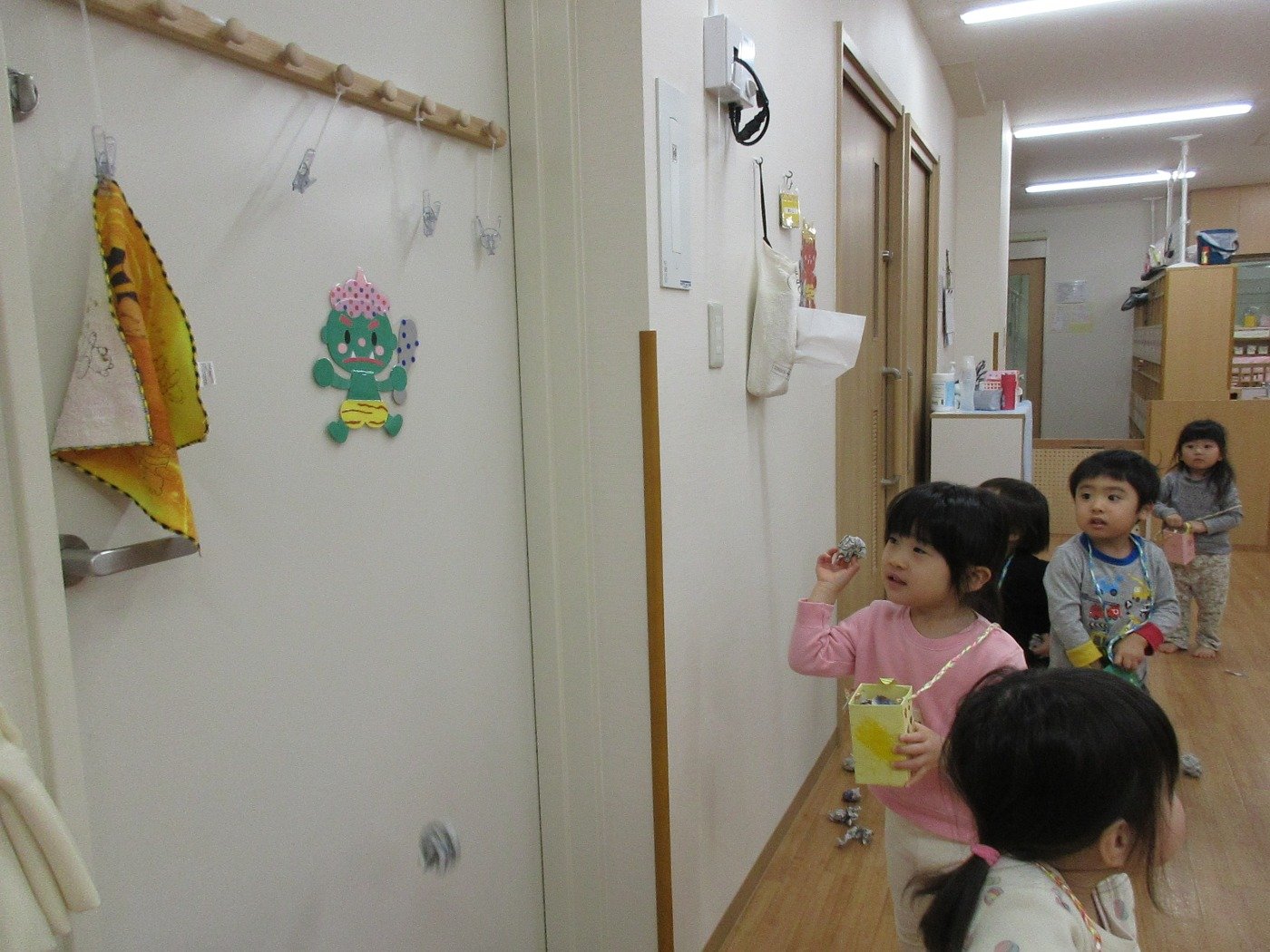 ぐまぐみさん ホームブログ 2022.02.01 いよいよ 明日は、、、、子ども達もドキドキしている 「まめまき」 子ども達と一緒に 「まめ」を作って いっぱい作って ぽいぽい の練習(笑) 明日は、どんな鬼さんが遊びにきてくれるのかな?