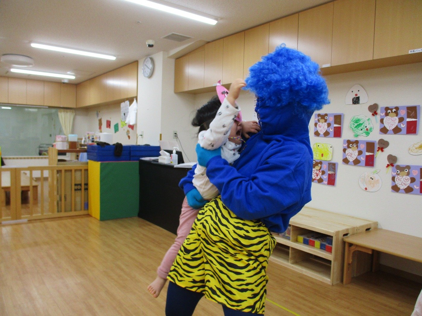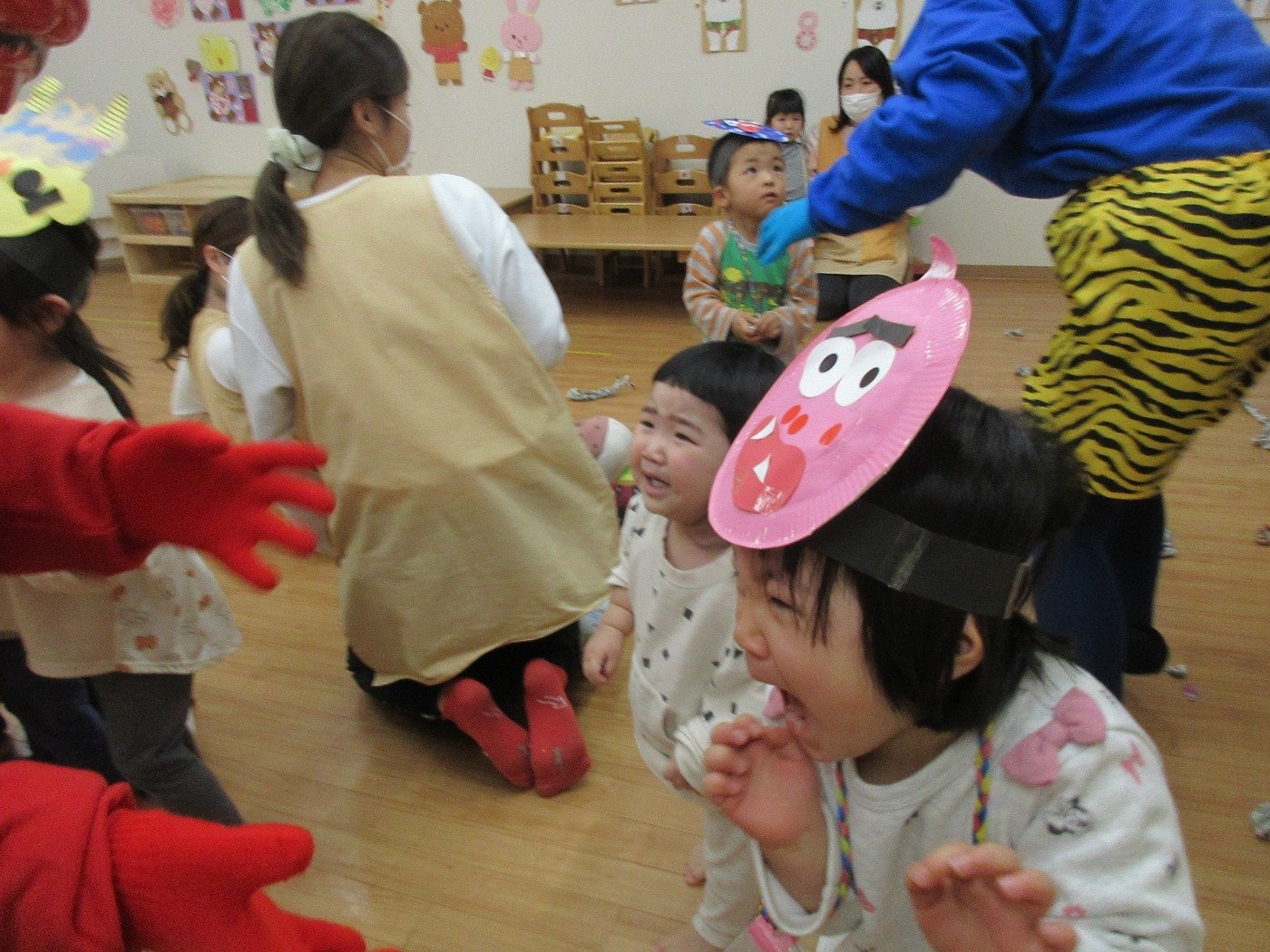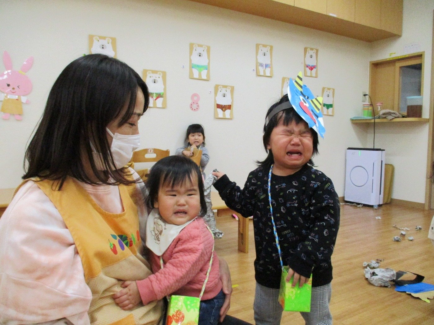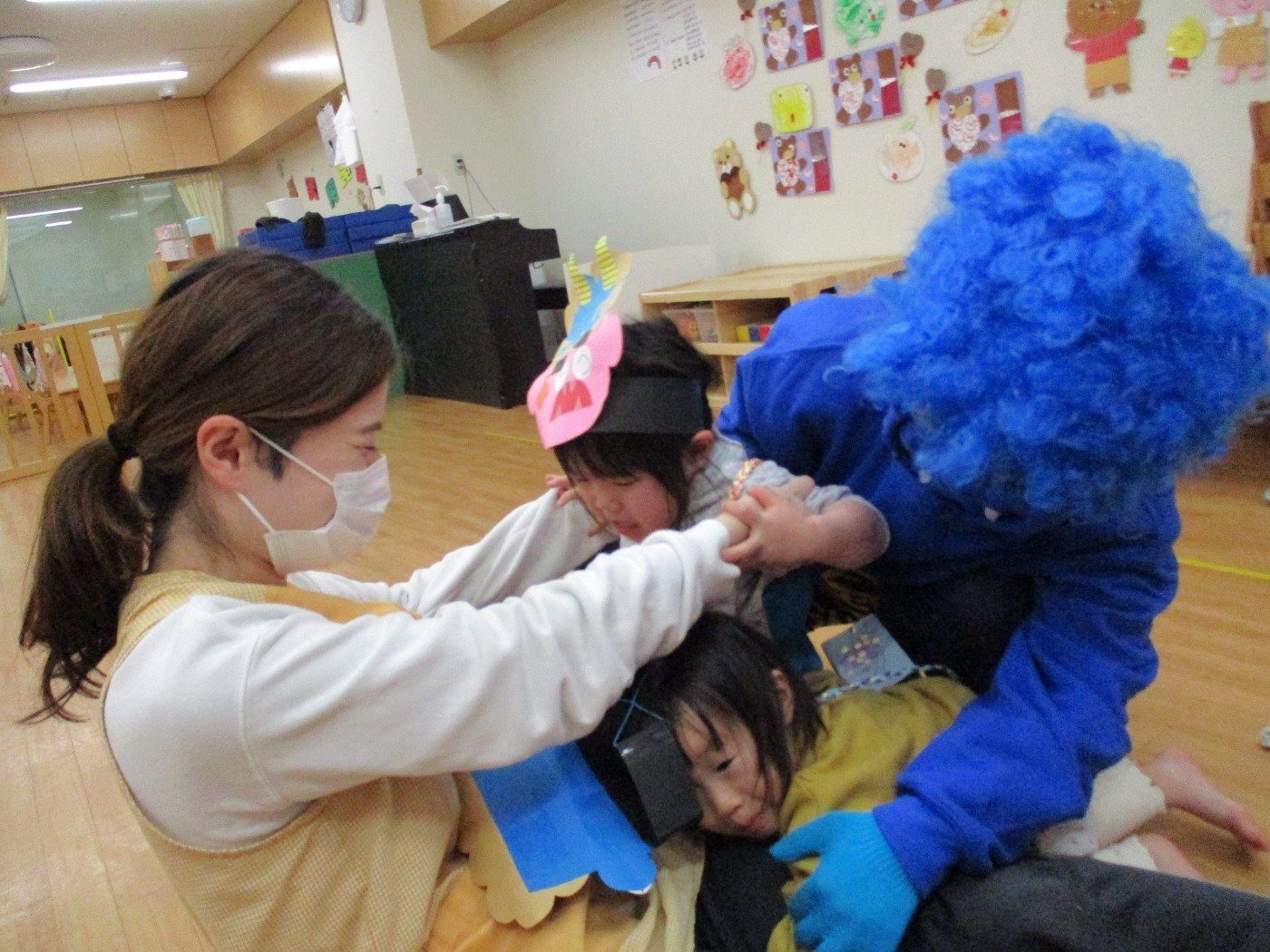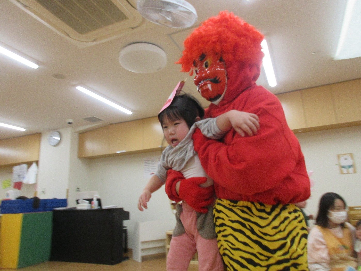 鬼さんが帰った後でも子ども達は先生に抱っこしてぇー