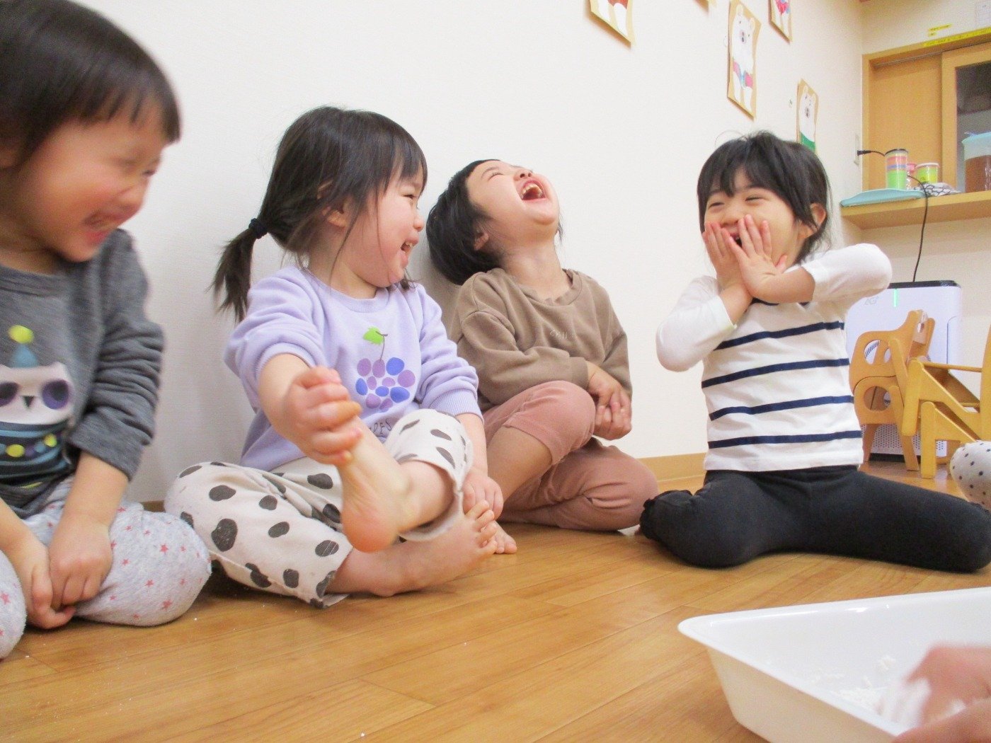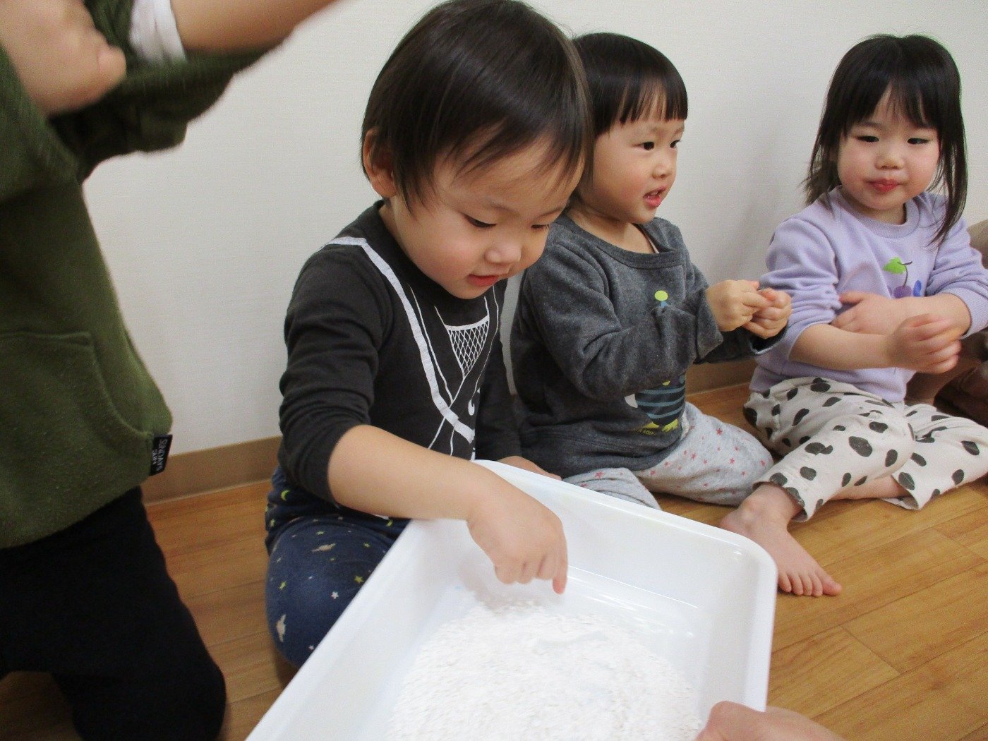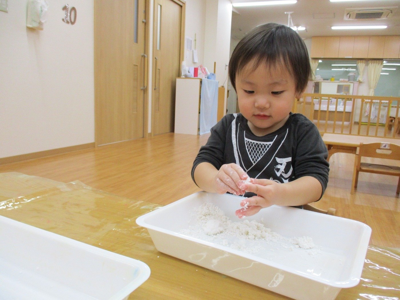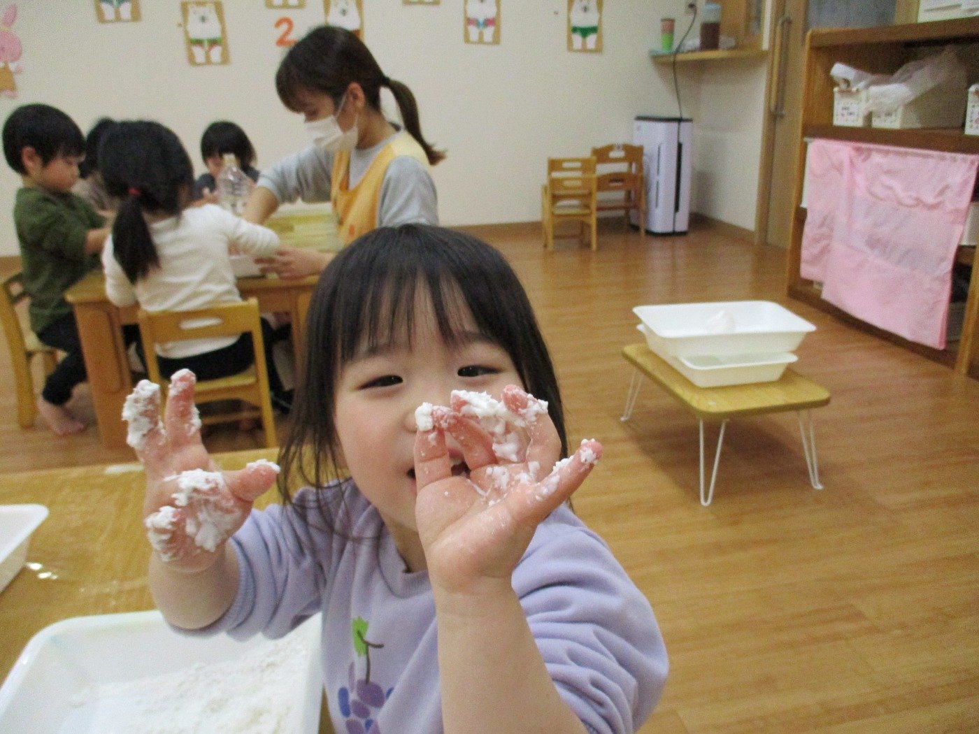 正解は、「白玉粉」で感触あそび