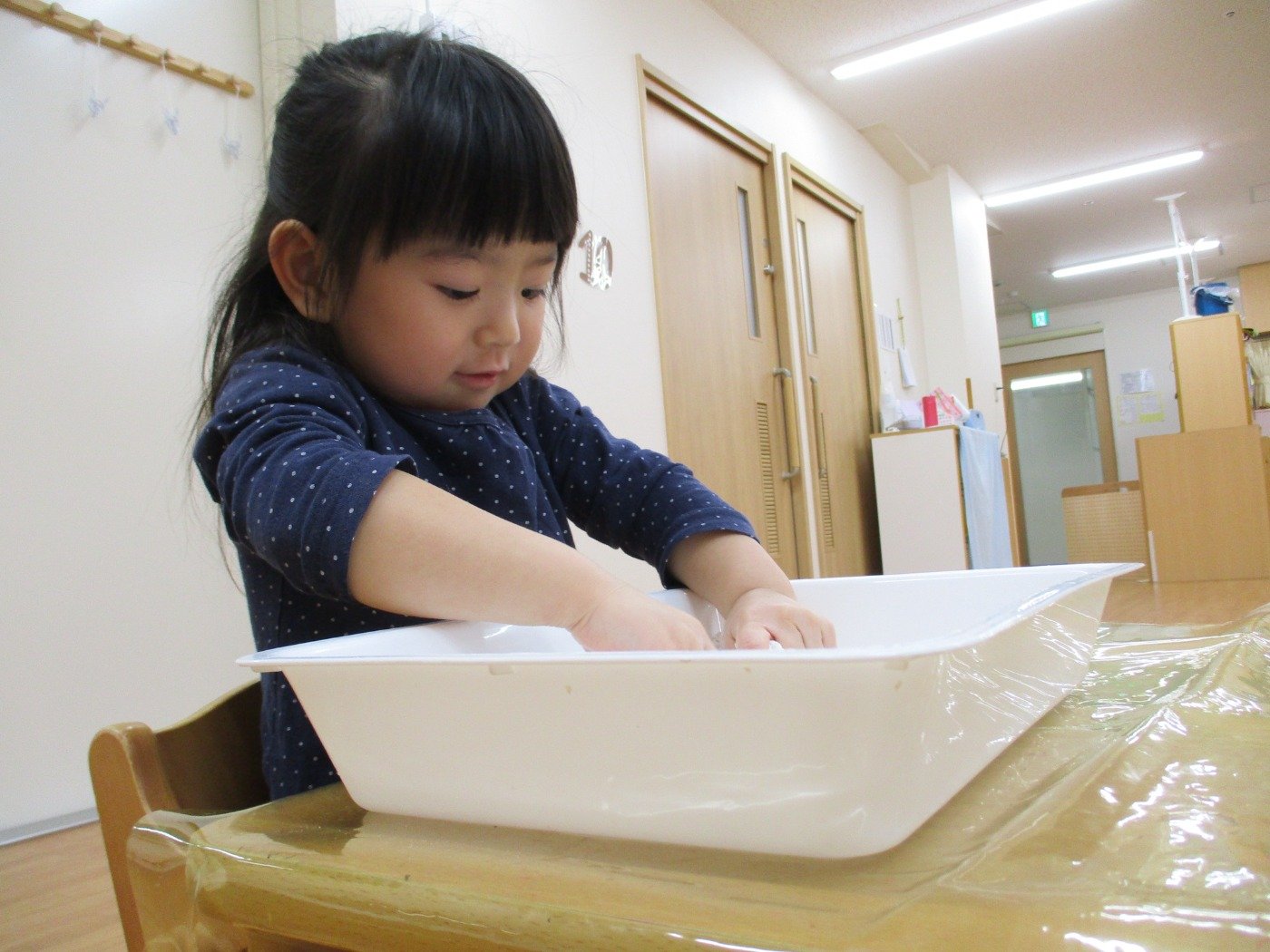 感触あそびをしている