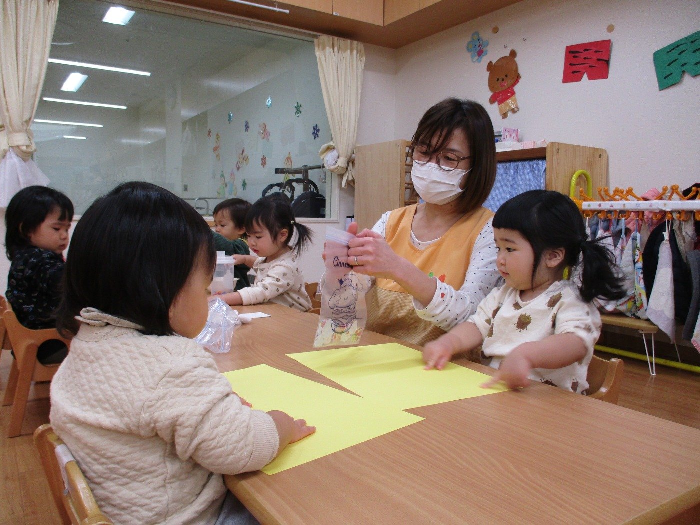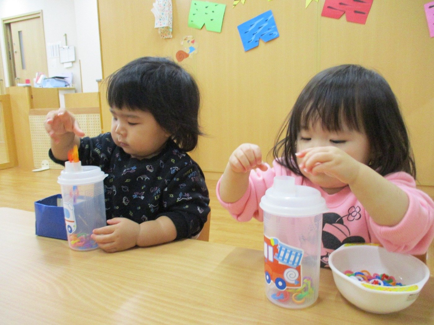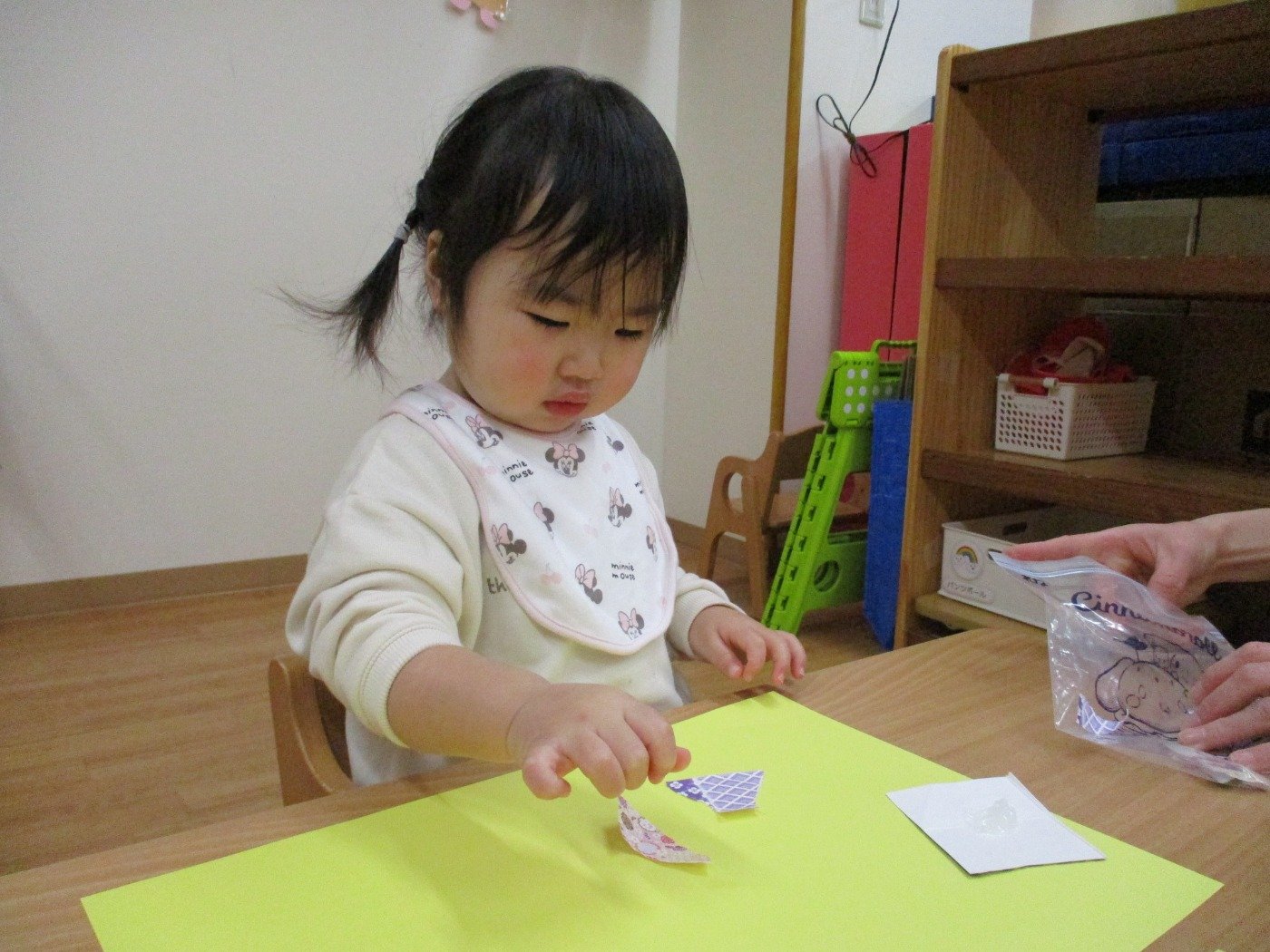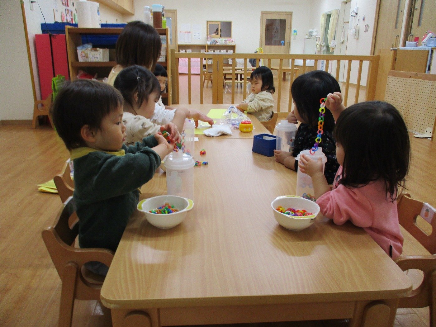 にじぐみさん ホームブログ 2022.02.07 ぺたぺた・・・制作と チェーンおとしをして遊びました♪ 制作も集中して参加している姿を見ると とっても成長を感じます 微細遊びのチェーンおとしも、集中! 繰り返し遊ぶ姿がみられます。 子ども達の成長を感じながら、たくさんの経験が出来るように 取り組んで進級に向けて関りを待ちたいと思います。