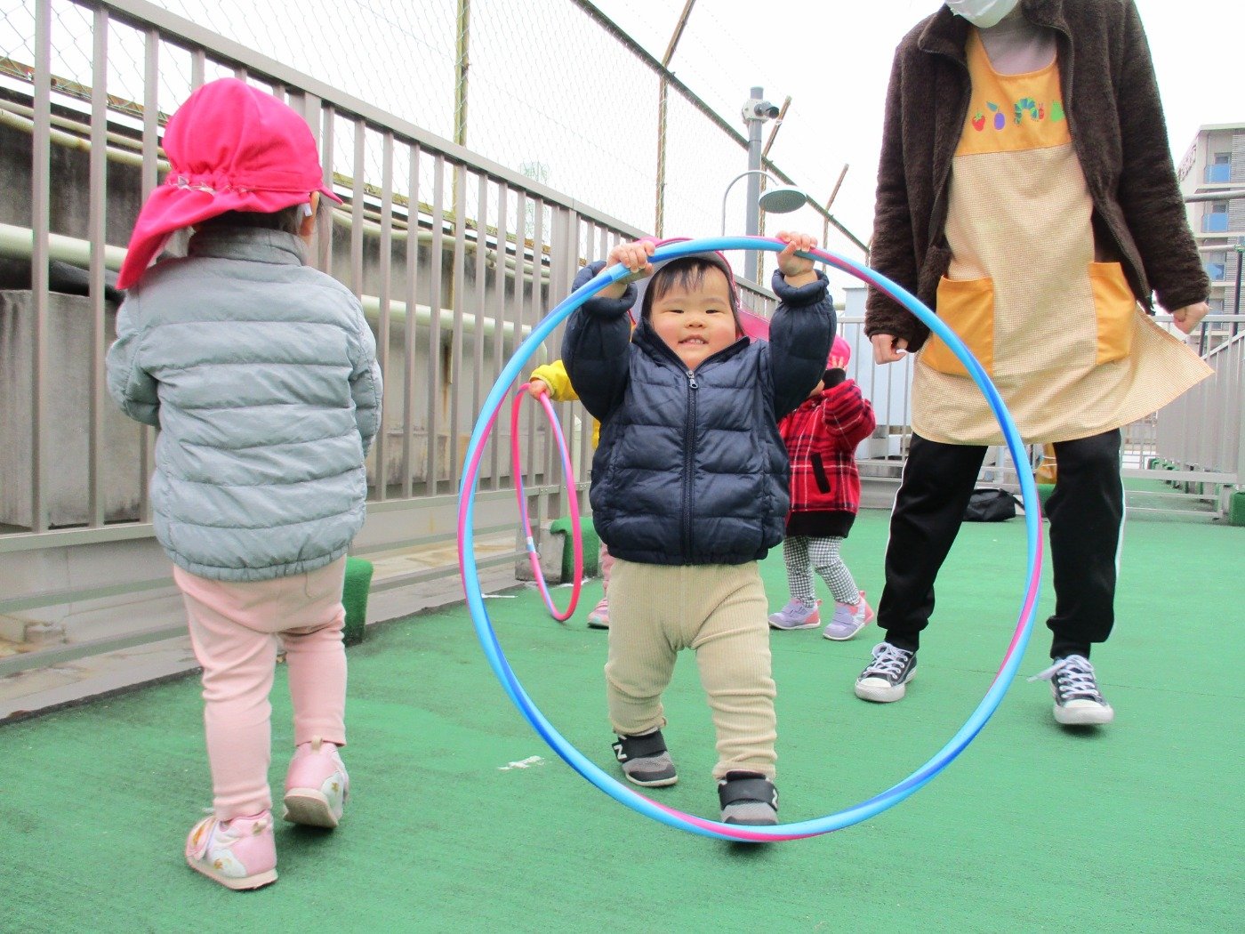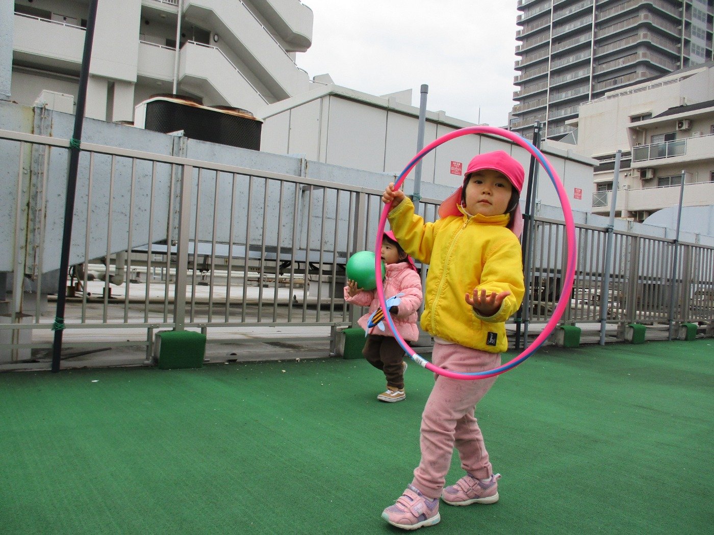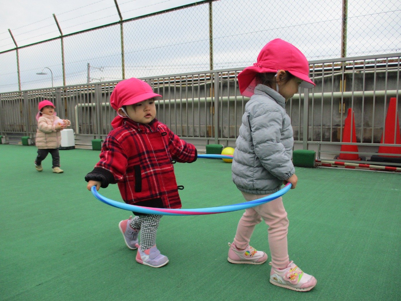 にじぐみさんとうさぎぐみさん ホームブログ 2022.03.01 屋上でにじぐみさんとうさぎぐみさんと一緒に ボールやフープでたくさん遊びました!! ボール蹴るのもとっても上手♫ 走るのも早くなったお友だち フープで電車ごっこ😊 外でのびのび体を動かして遊びました。