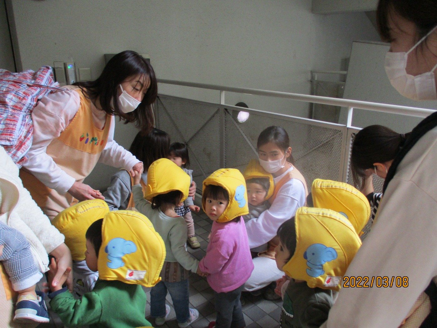 避難訓練 ホームブログ 2022.03.08 避難訓練で小田体育館へ避難しました!! 地震の知らせの笛が鳴ると、子ども達は先生と一緒に 机の下へ避難 落ち着いて、先生のお話を聞いて避難する姿を見るとほんとに 成長を感じました。 避難する中で、子ども達が「まだまだゆれてるよ」 「はやくいかいと」と話してくれていました。 危機管理体制は大切なことで、日々の保育の中で子ども達に 伝えて行けるようにしていきます。