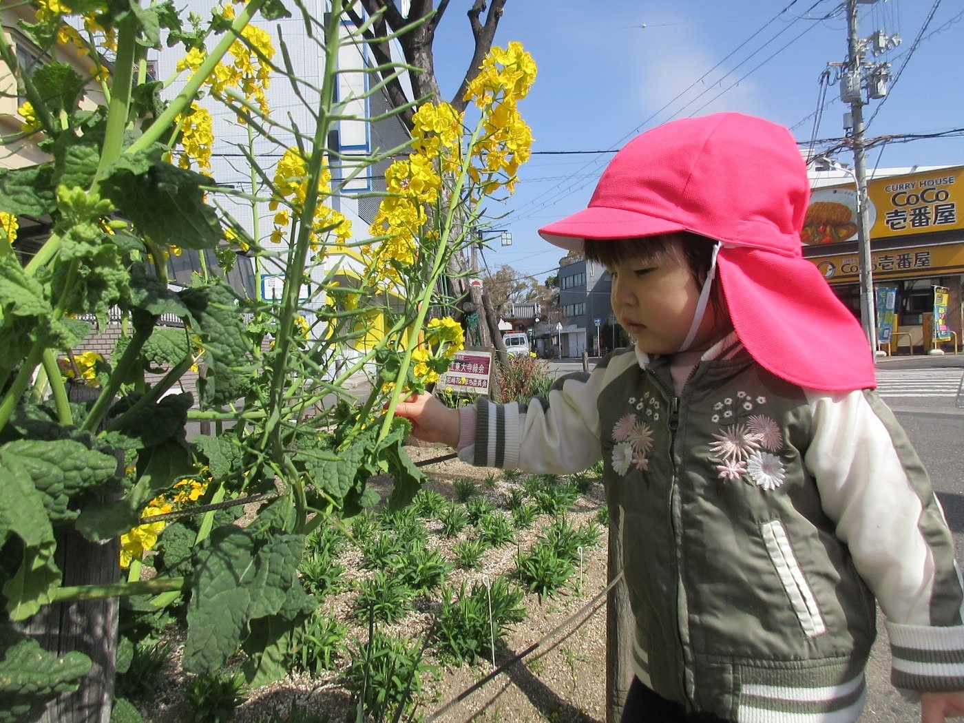菜の花の黄色に興味津々