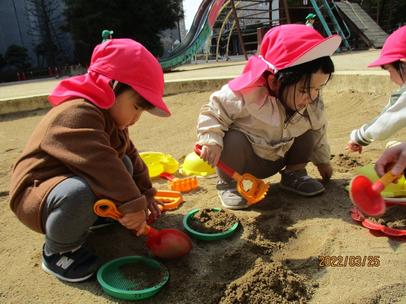 ひよこぐみさん ホームブログ 2022.03.25 春を探しに・・・・ 子ども達もお散歩大好きで 保育士の声掛けで靴を履こうとする 姿に成長を感じます。 綺麗なお花をじっくりみて お砂場でたくさん遊びました♬ 砂の感触を楽しんでいました。