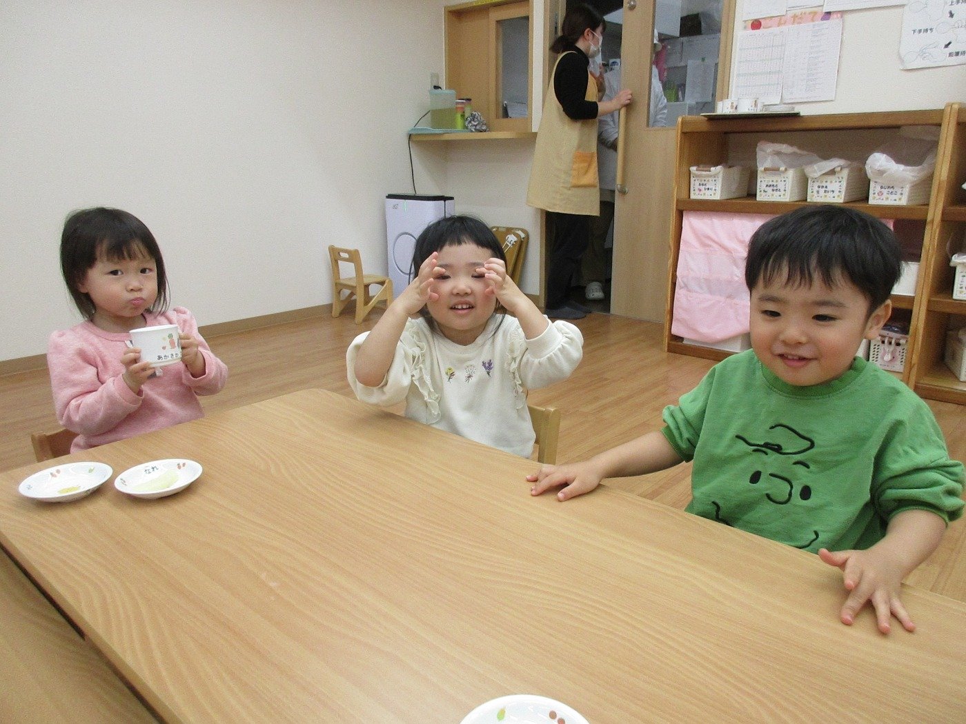 くまぐみさん ホームブログ 2022.03.25 くまぐみさん 明日は、卒園式。。。 子ども達もちょっぴり意識もしているのかな? くまぐみさんが全員そろって過ごせるのも 今日で最後😢 お給食もみんなで囲んで頂きました。