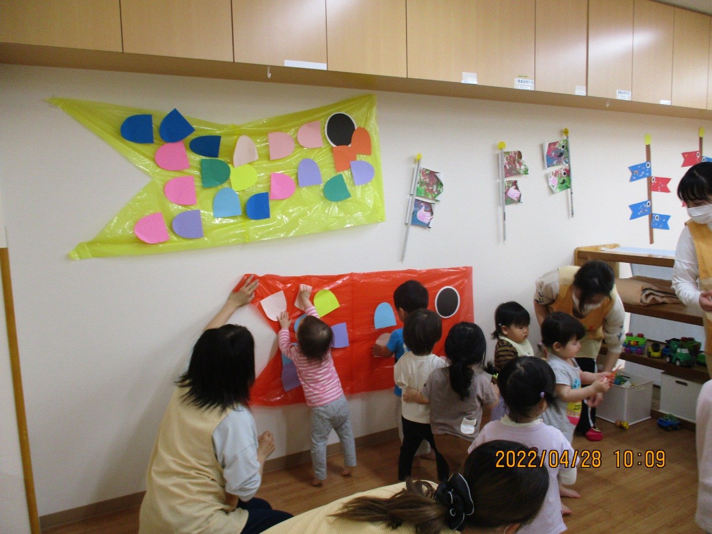 子どもの日の集い ホームブログ 2022.04.28 子ども達が 健やかに大きく成長して欲しい・・・ そんな思いを込めて 「子どもの日の集い」をしました。 一緒にこいのぼりを作り、歌をうたい 和やかな雰囲気で会を楽しみました♫ お家ではどんな、子どもの日を過ごすのかな? 菖蒲湯に入り、ちまきや柏餅も食べるのかな? 子ども達の様子を聞けるのがとっても楽しみです。