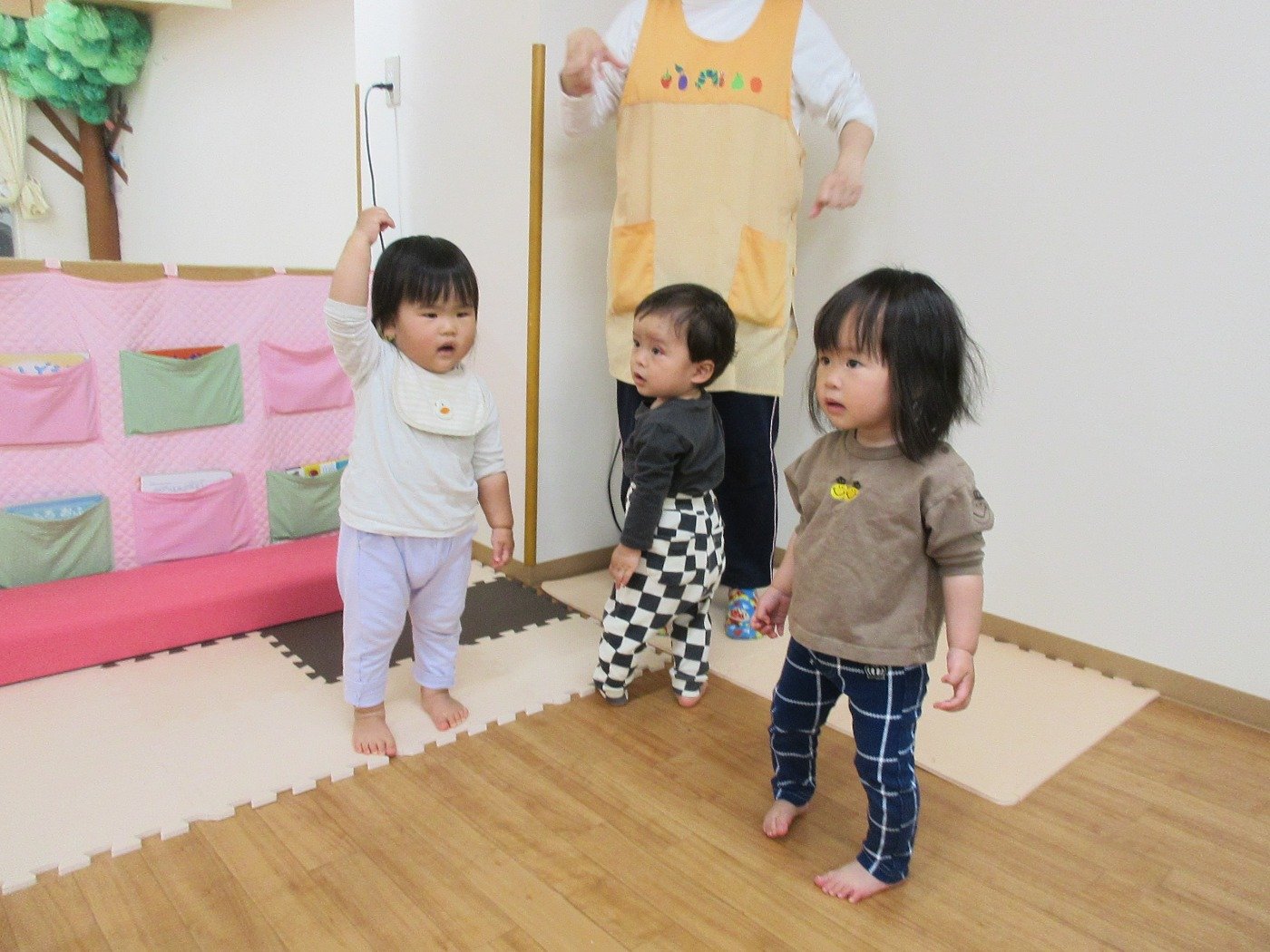 うさぎぐみさん ホームブログ 2022.05.11 今日も子ども達の元気な声が聞こえてきます。 慣らし保育中のお友だちも園の雰囲気に少しは慣れてくれたか? 好きなおもちゃを見つけて、遊んだり・・・・ 先生と一緒に体操をしました。