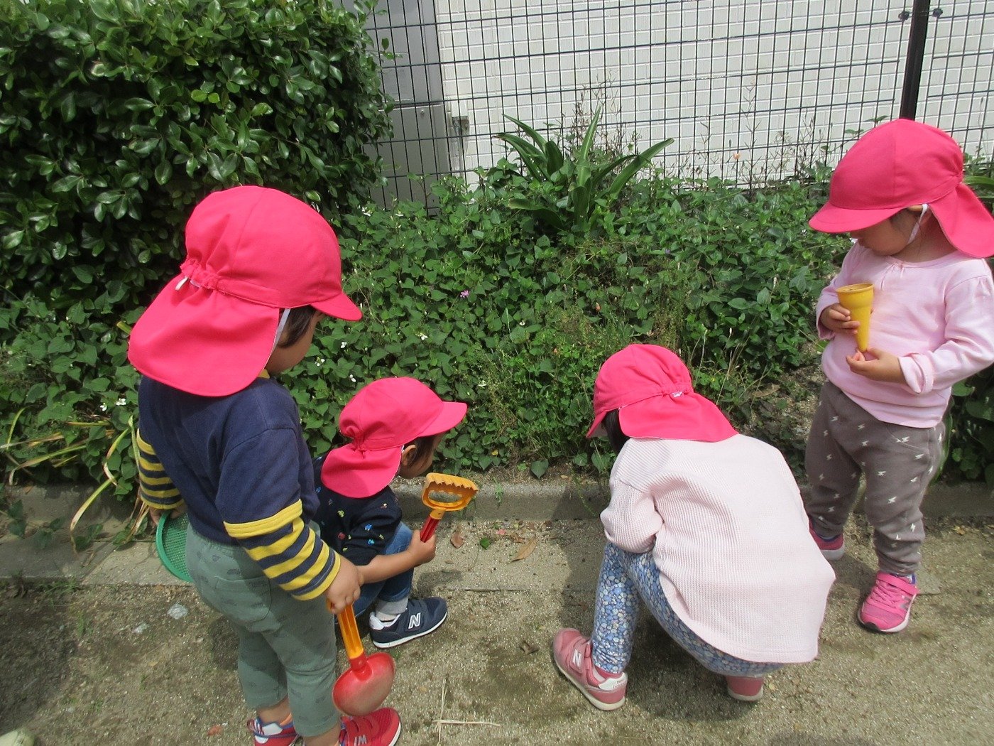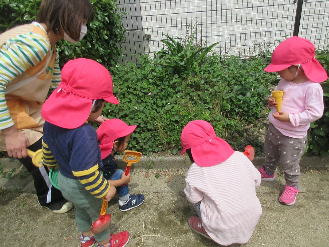 くまぐみさん ホームブログ 2022.05.16 くまぐみさんは今日も元気いっぱい 「いってきまぁーーーす」と 公園に出発!! 砂遊びや・・・探検 沢山遊んで帰ってきました。 子ども達の 「ただいま・・・」のはずが「おかえりー」と にこにこで言ってくれるのが また、かわいい♫ こんな可愛い時期はあっという間に過ぎ去ります。 一日、一日を大切に子ども達主体で大切に過ごしたいと思います。