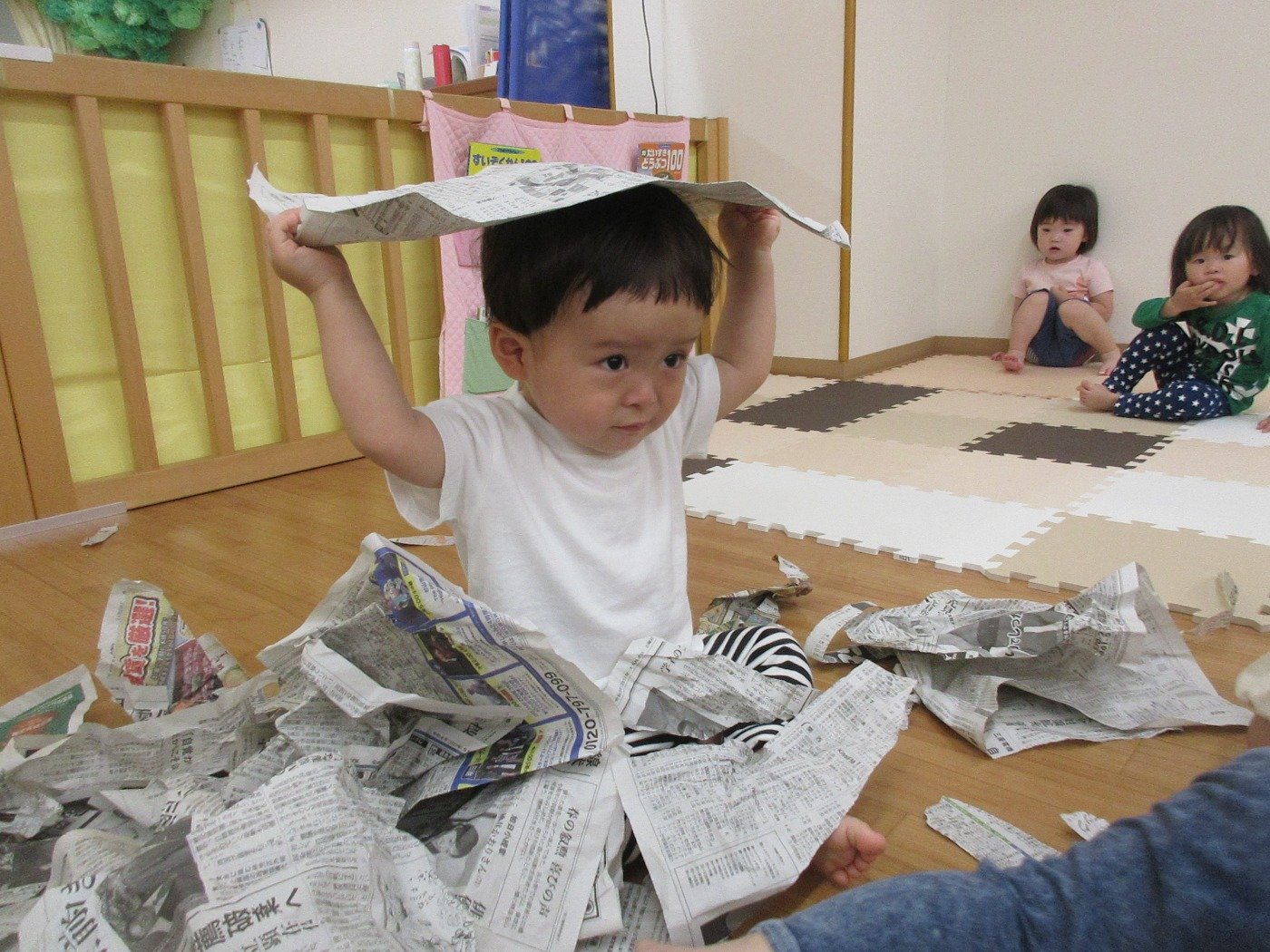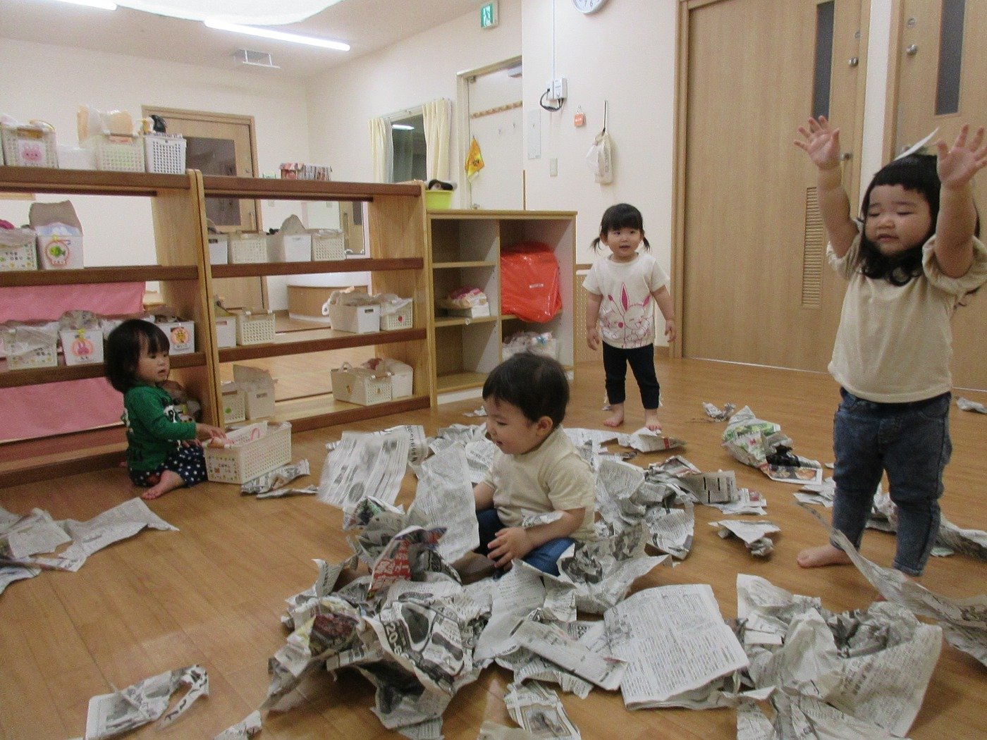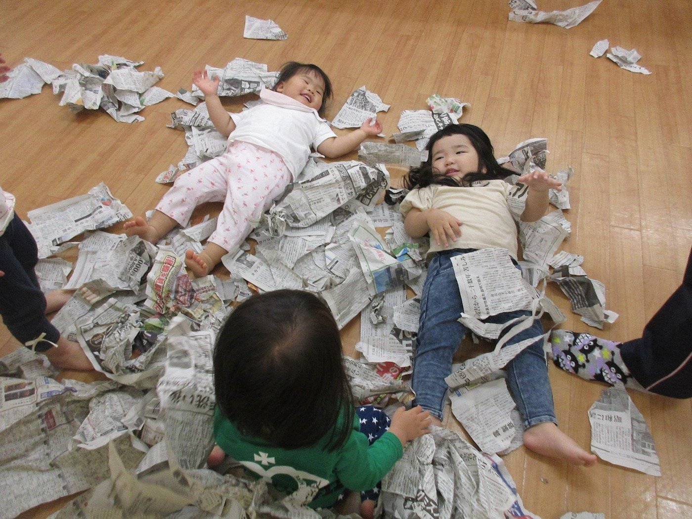 うさぎぐみさん ホームブログ 2022.05.30 元気いっぱいのうさぎぐみさん 今日はお部屋で「しんぶん」遊び♪ 子ども達も大はしゃぎで、 びりびり・・・ 新聞を広げてみたり・・・ 新聞の雨!! お友だちと新聞の上に寝転んでみたり とたくさん「しんぶん」の感触を楽しみました。