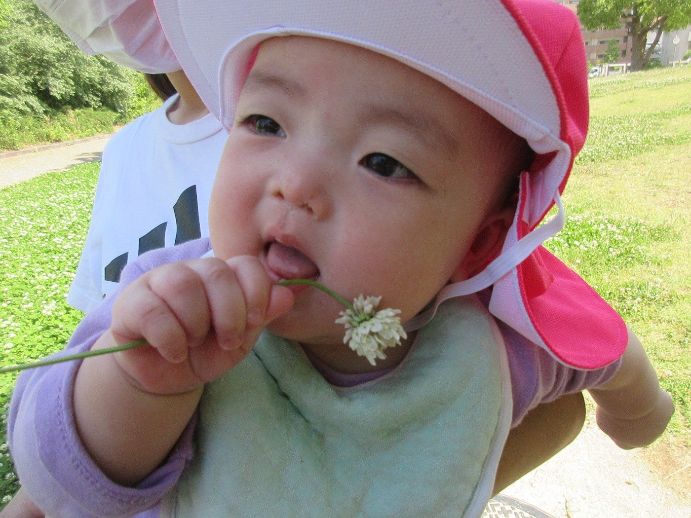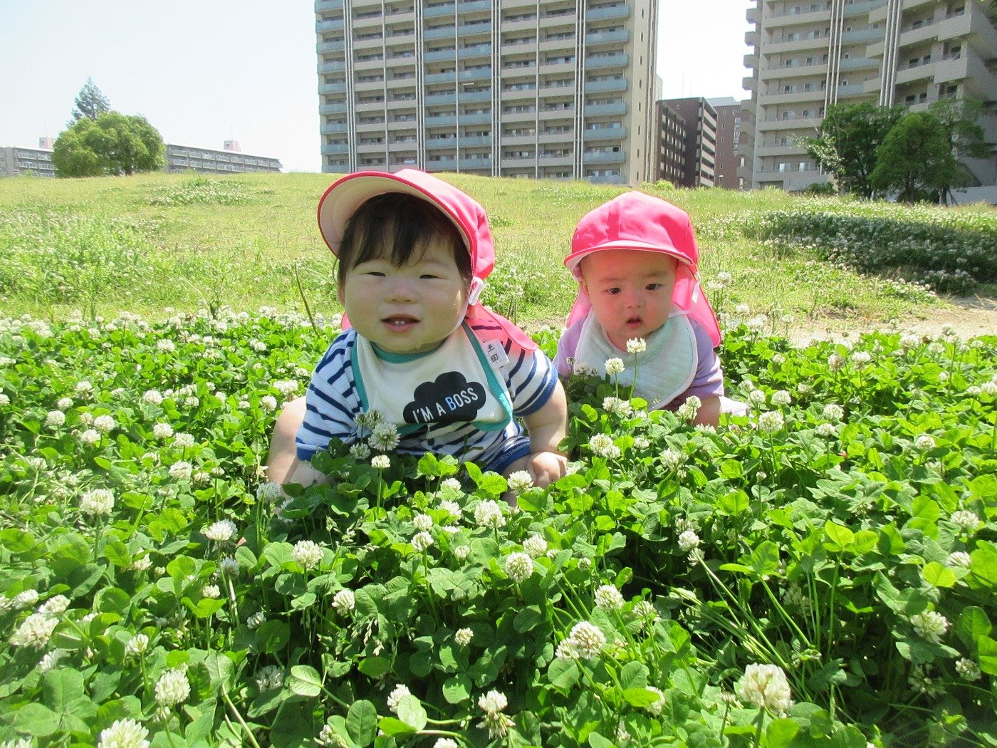ひよこぐみさん ホームブログ 2022.06.02 今日も良いお天気! ひよこぐみのお友だちはお散歩へ出発 ふわふわの クローバーの上で座って気持ちよいね。 自然を感じて、見て、触れて たくさん遊びました😊