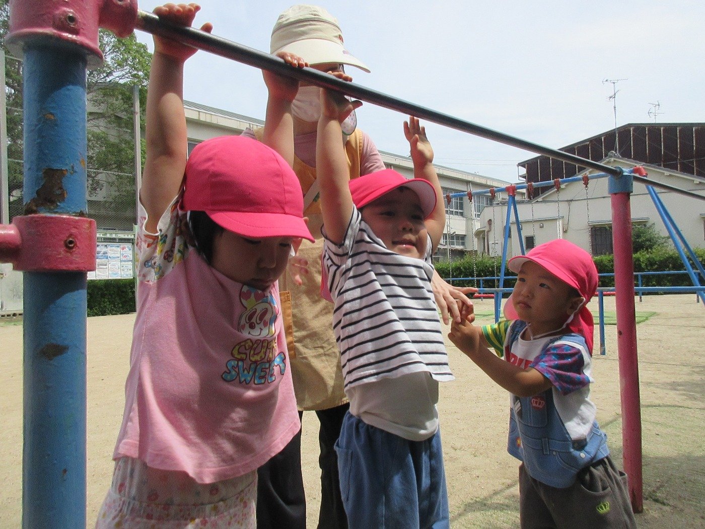 くまぐみさん ホームブログ 2022.06.27 とっても元気な子ども達!! 今日は、川田公園に出発😊 準備も上手なくまぐみさん・・・・ 小さなお友だちのお世話にも興味津々で お手伝いも沢山してくれます。 川田公園は、すべり台の種類もあり 鉄棒にぶら下がって 得意ポーズ! 子ども達は、お散歩から帰って来ると 元気な声で 「ただいまーーー」 「〇〇みたよ」 「あったよー」 と嬉しいお話をしてくれます。 そんな子ども達との時間が一番好きな時間です♪ 明日はどんな、わくわくが待ってるのかな?