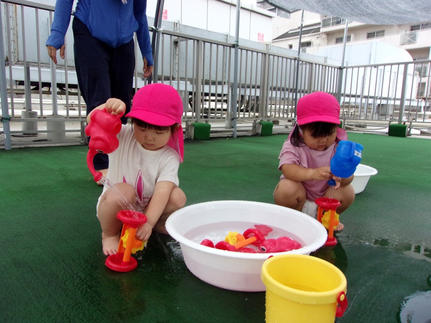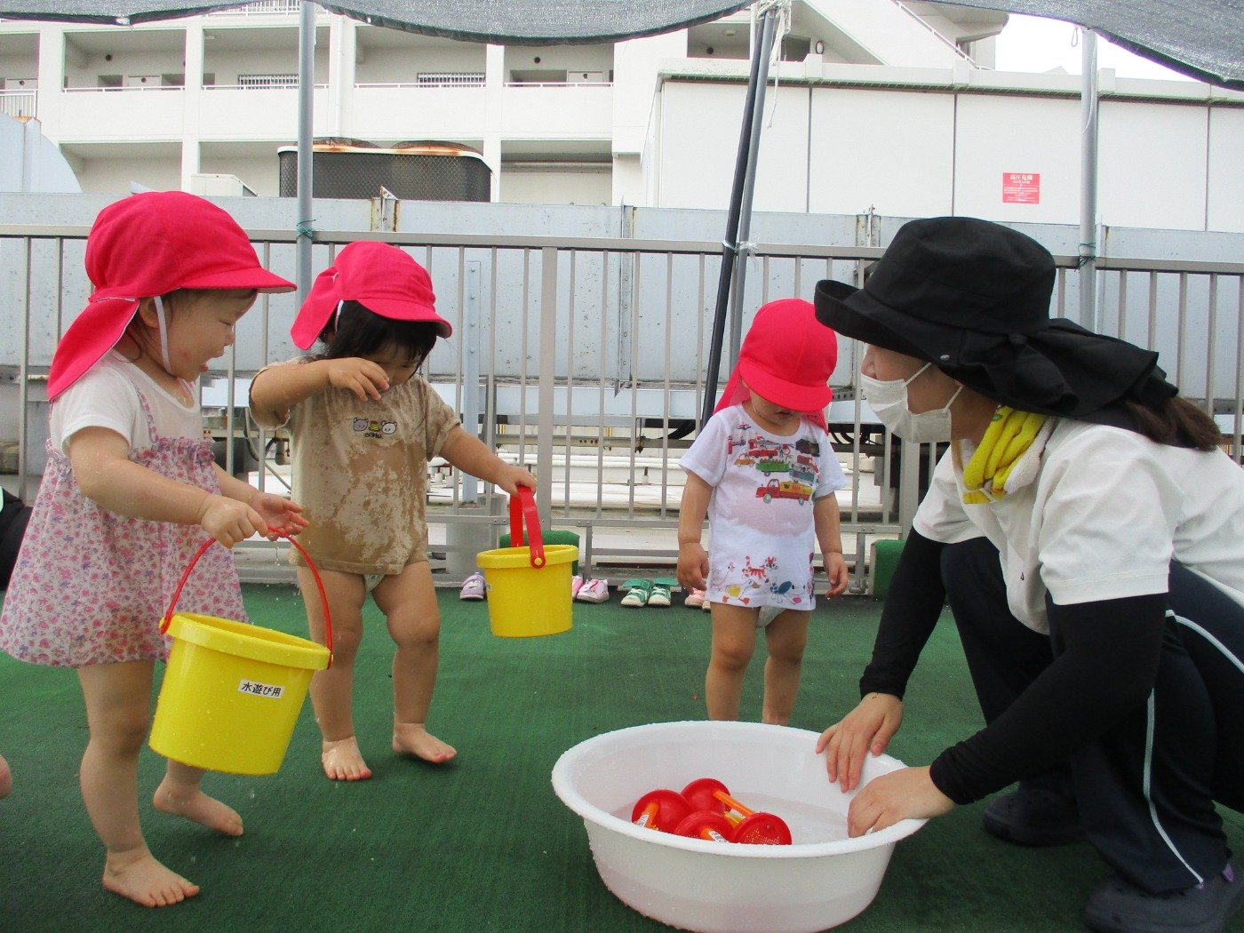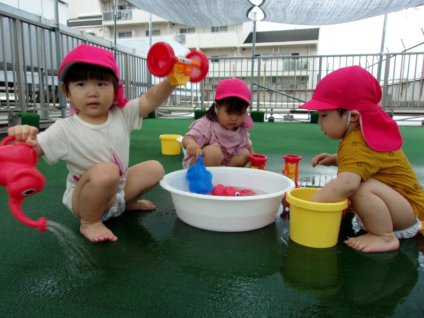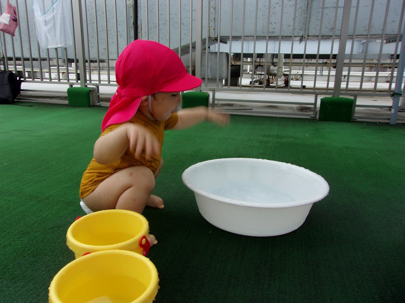 うさぎぐみ ホームブログ 2022.07.08 今日は、水遊びをしました!! ゆっくり、じっくり 遊び込をできる環境を・・・と グループに分けて水遊び♪ まだまだ遊びたいお友だち お水がちょっぴり苦手なお友だち 反応も興味も様々です 素直な反応ですよね。 暑い日は続きます。 無理なく、季節の遊びを楽しみたいと思います。
