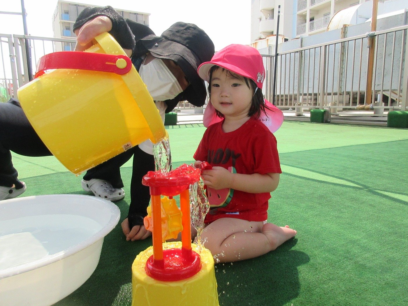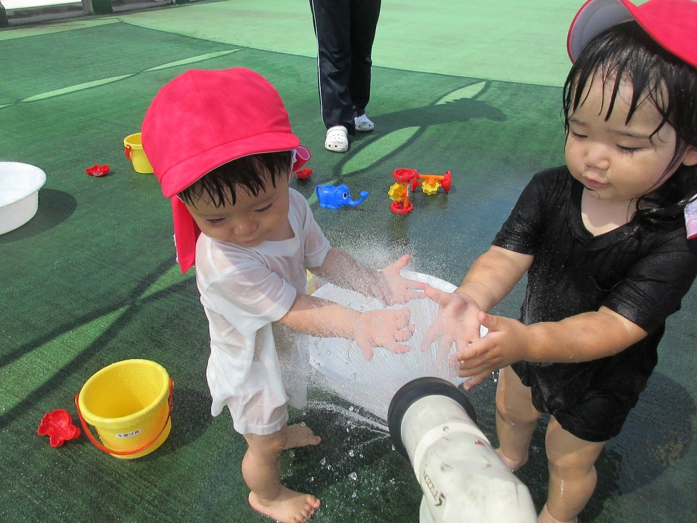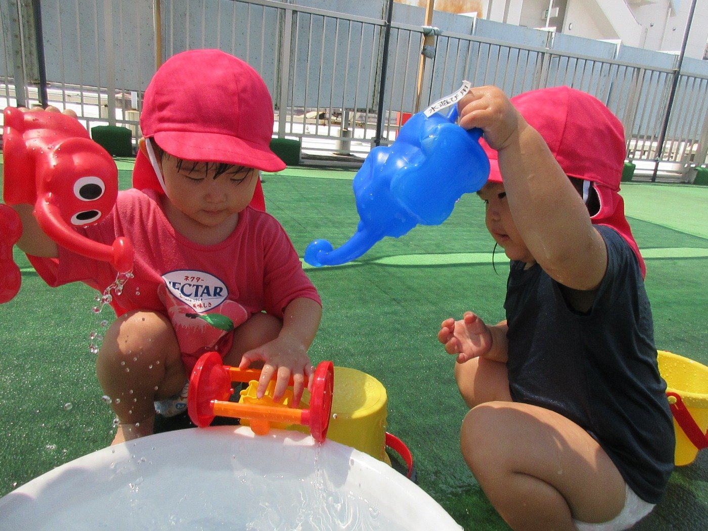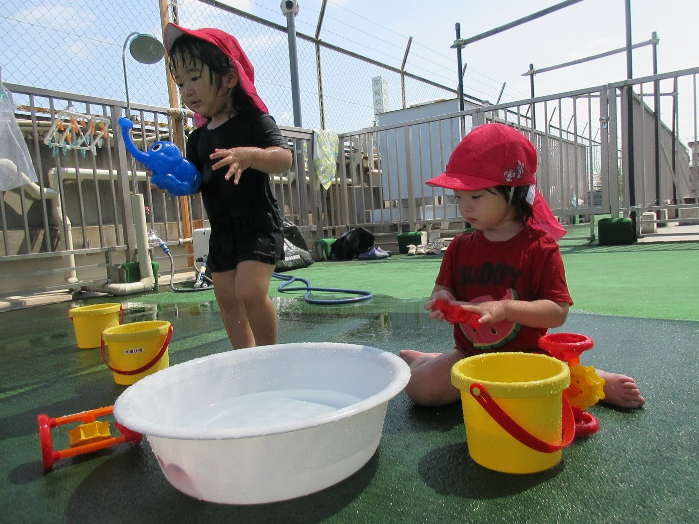 うさぎぐみさん ホームブログ 2022.07.25 子ども達も、水遊びがしたくて待ちきれない様子!! 早く・・・早くの気持ちが全面に出ています(笑) 子ども達の「いってきまーーーす」の声も弾んでいます。 沢山水遊びをしてきたようで、帰ってきてからも にこにこの笑顔♪ 今週はずっとお天気だといいね😊