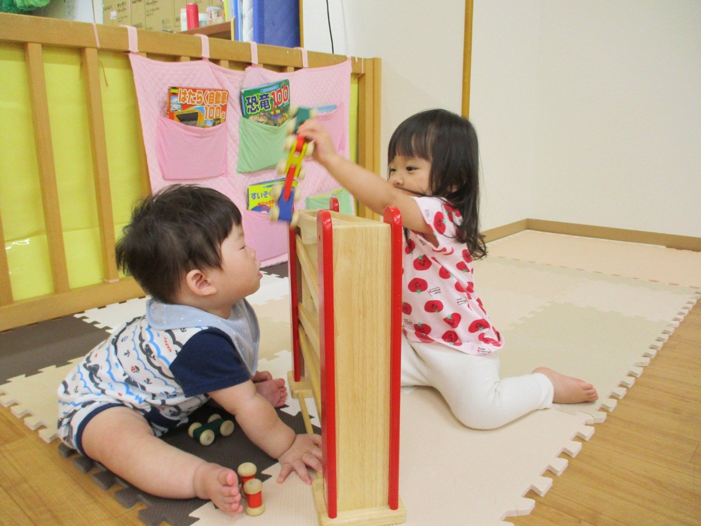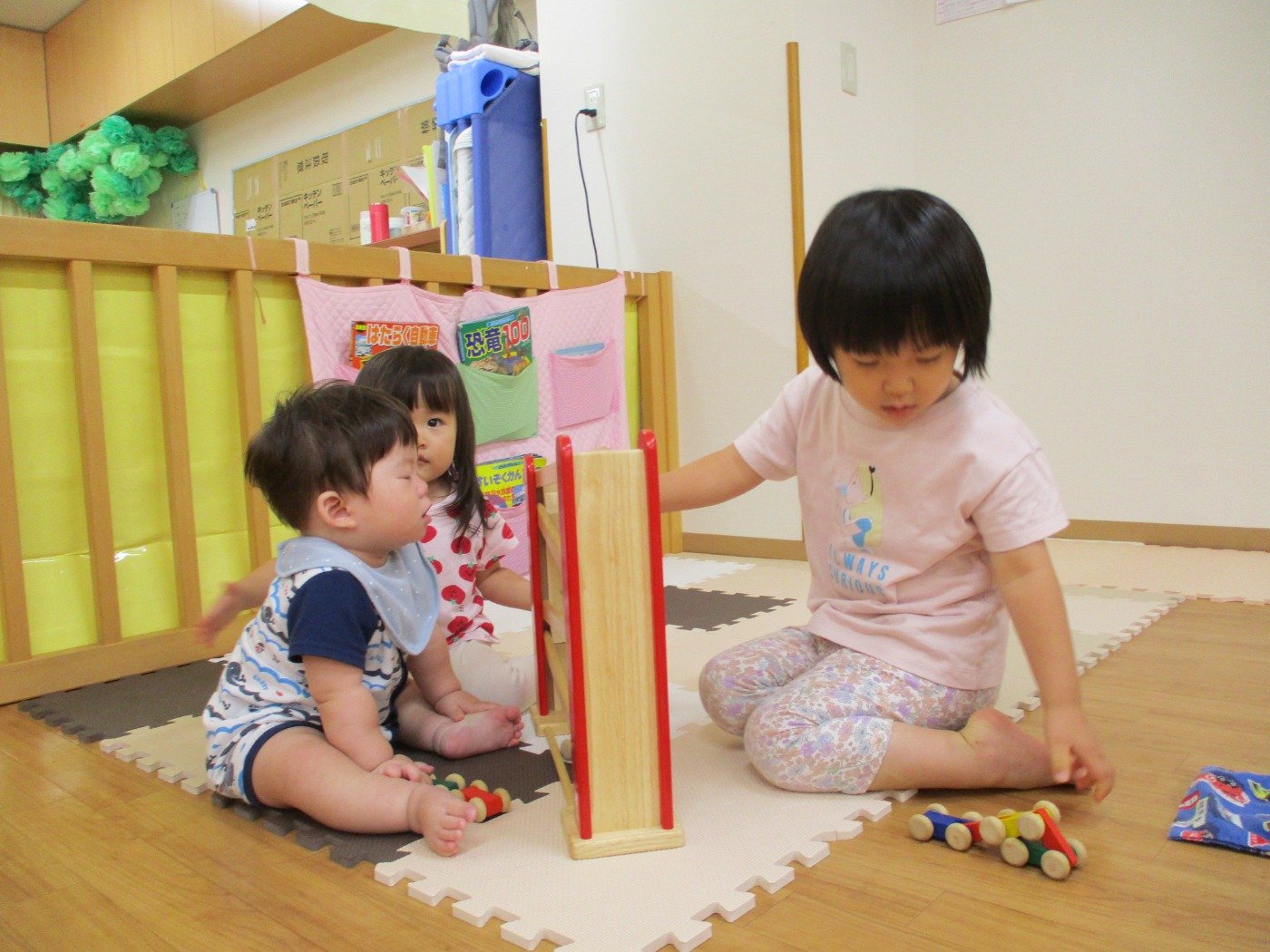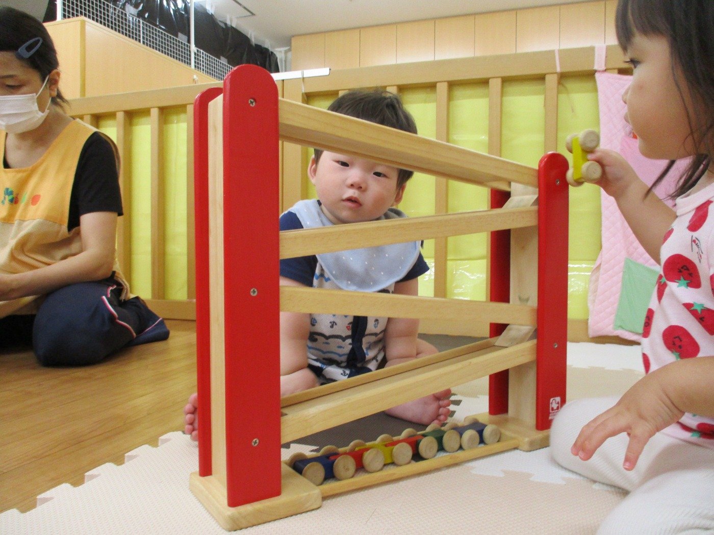 ひよこぐみさん ホームブログ 2022.07.27 朝は、異年齢との交流の時間 お兄ちゃんやお姉ちゃんと一緒に過ごします😊 ひよこぐみのお友だちも お兄ちゃん、お姉ちゃんの遊びをよーーーく みてます。 一緒に遊びができる時間も素敵な時間ですよね。 みていると とっても微笑ましいです♡