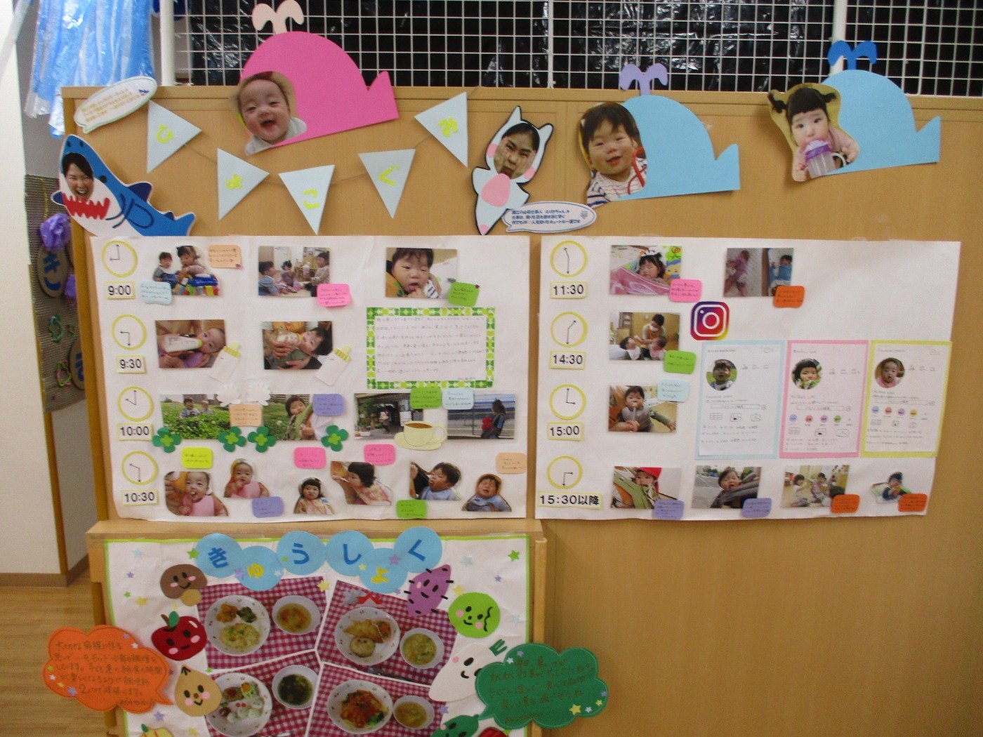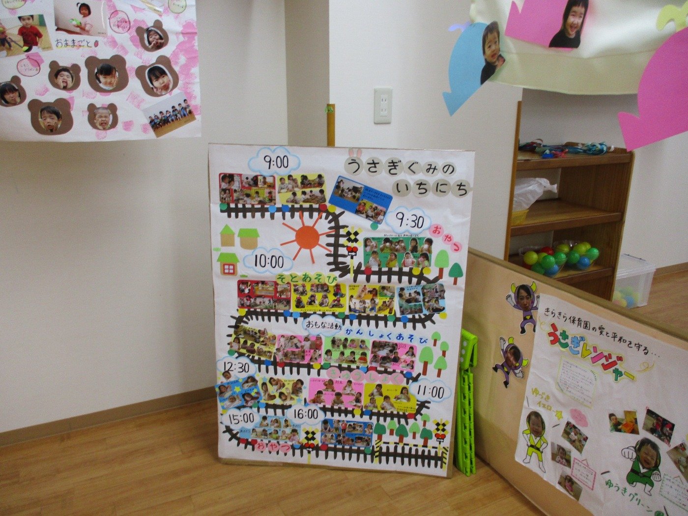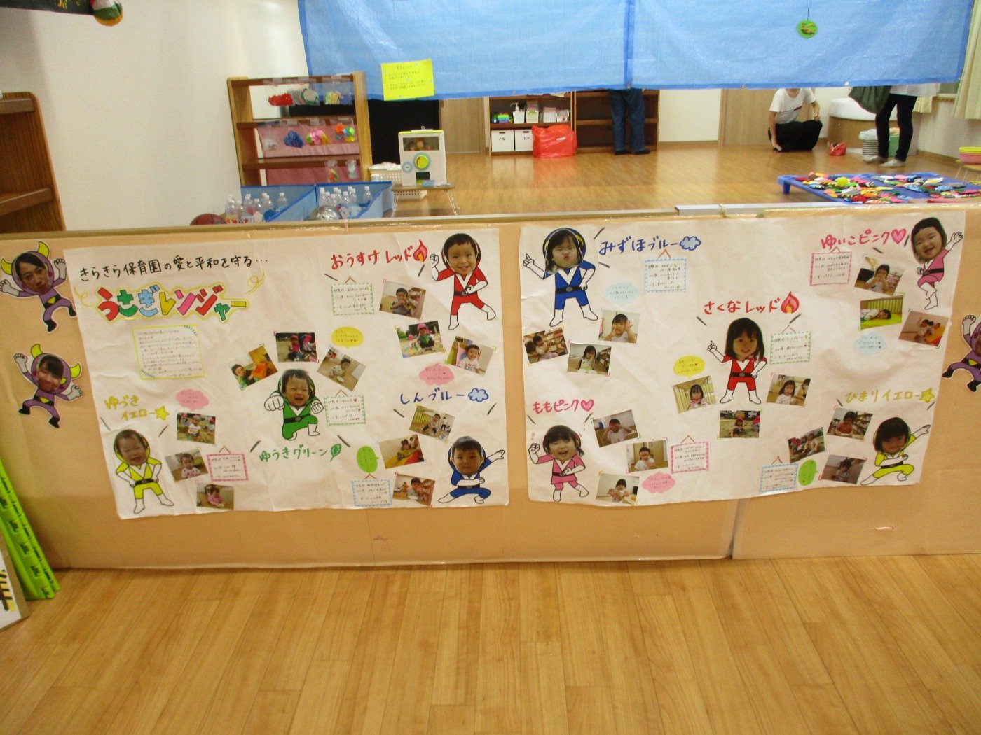 クラス毎で、子ども達の様子をスクラップにしました。