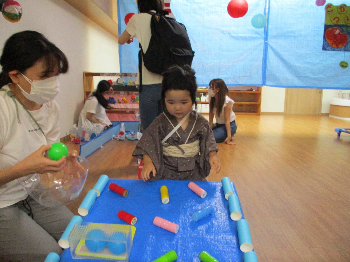 縁日だから、お部屋を少し暗くミュージックも流してお祭り気分!