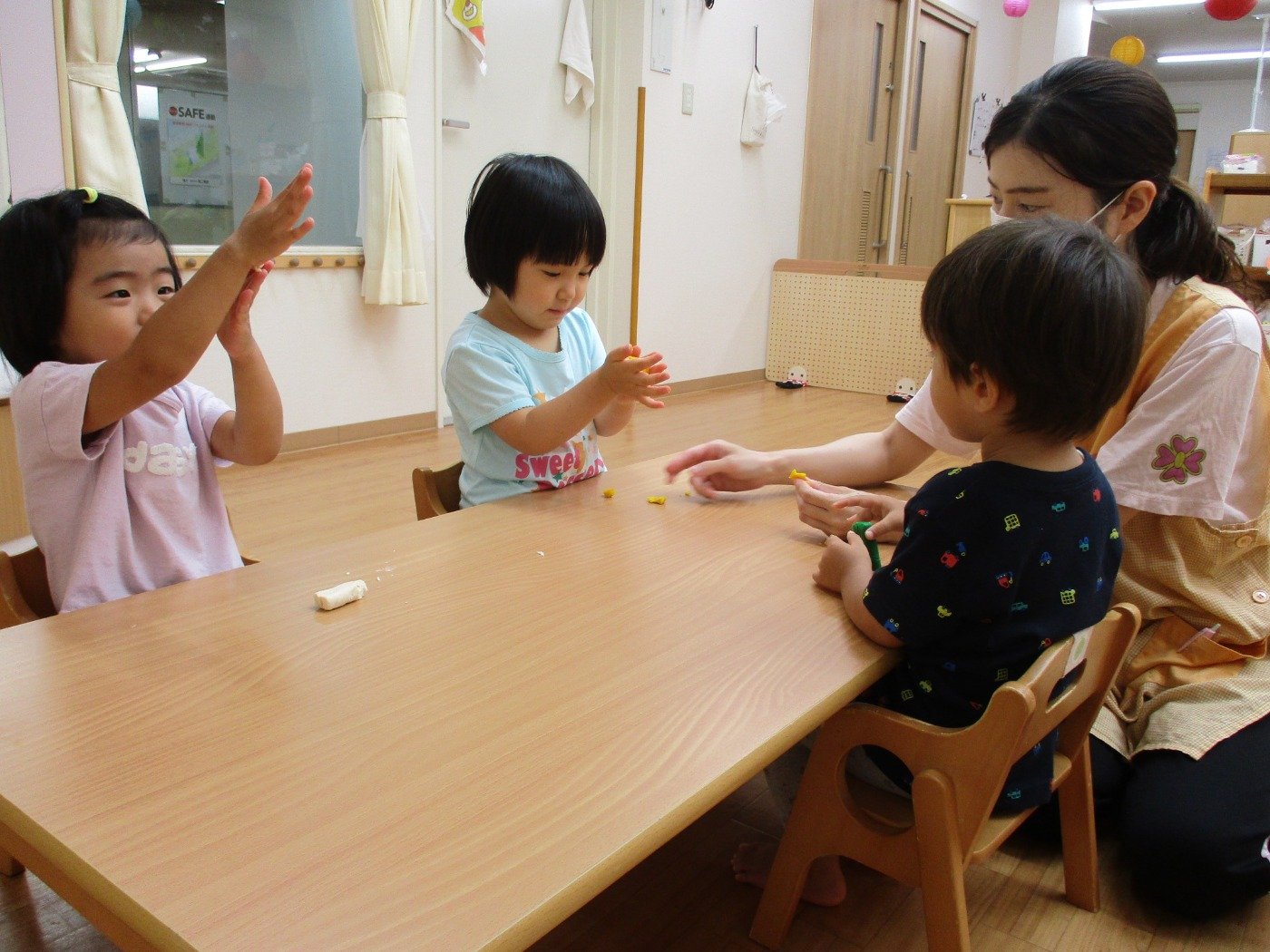 くまぐみさん ホームブログ 2022.08.03 くまぐみさん 今日はお部屋での活動!! 粘土遊びをしていました。 みてみてーー!! 作ったのを嬉しそうに見せてくれる子ども達 がとっても可愛かったです♪