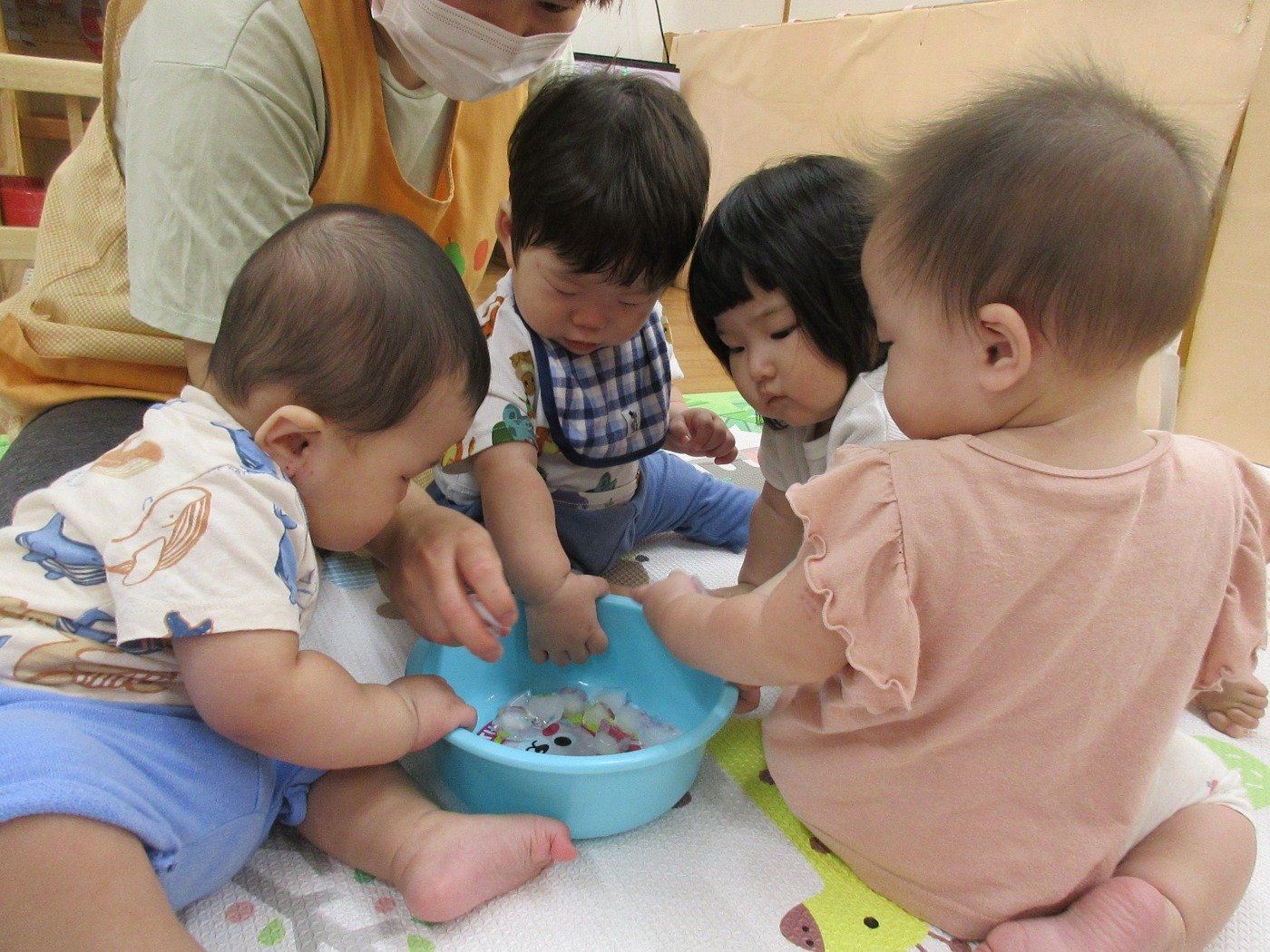 お部屋で、氷の感触あそびをしました!