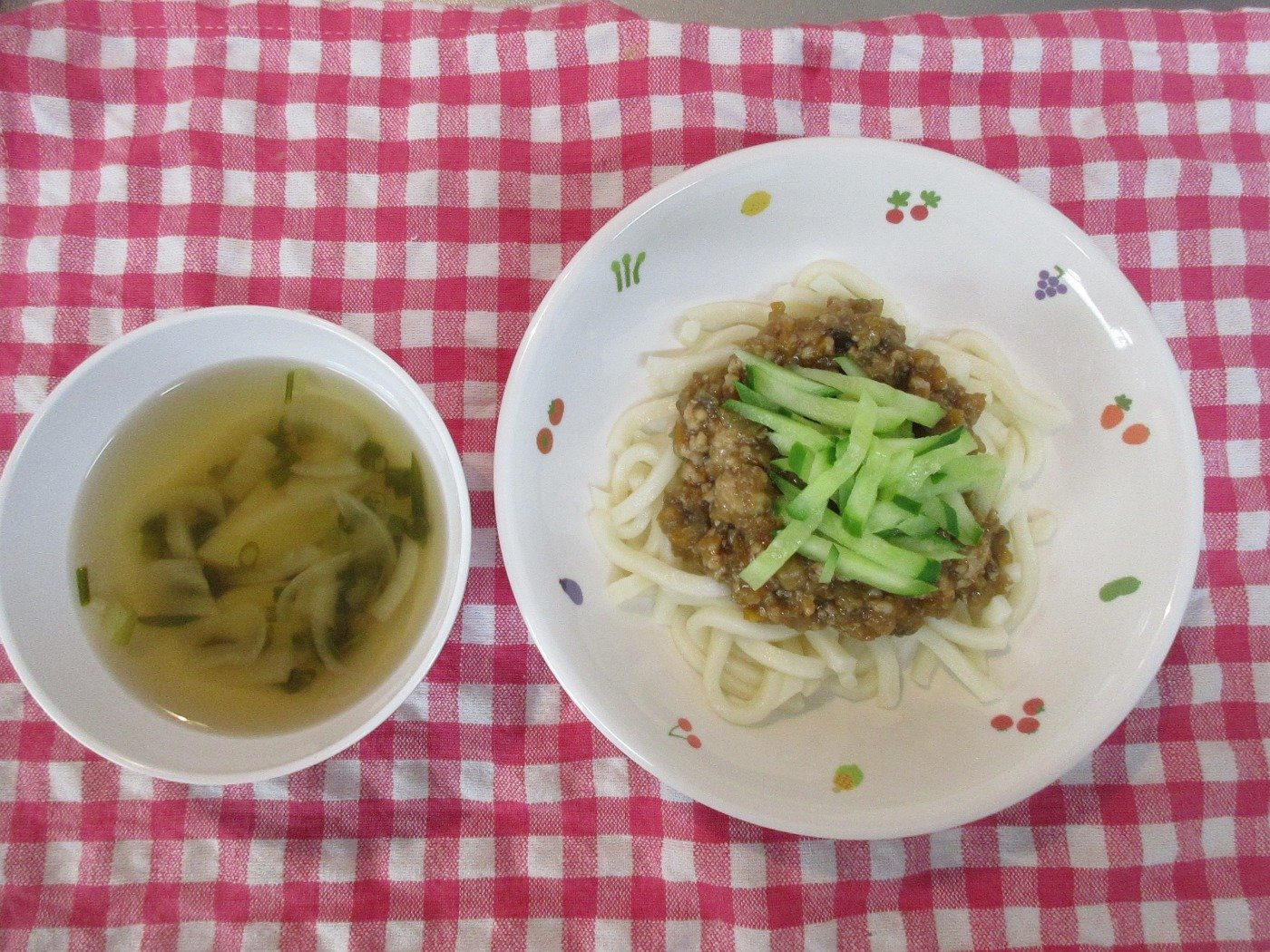 ひよこさんは、離乳食を食べています。