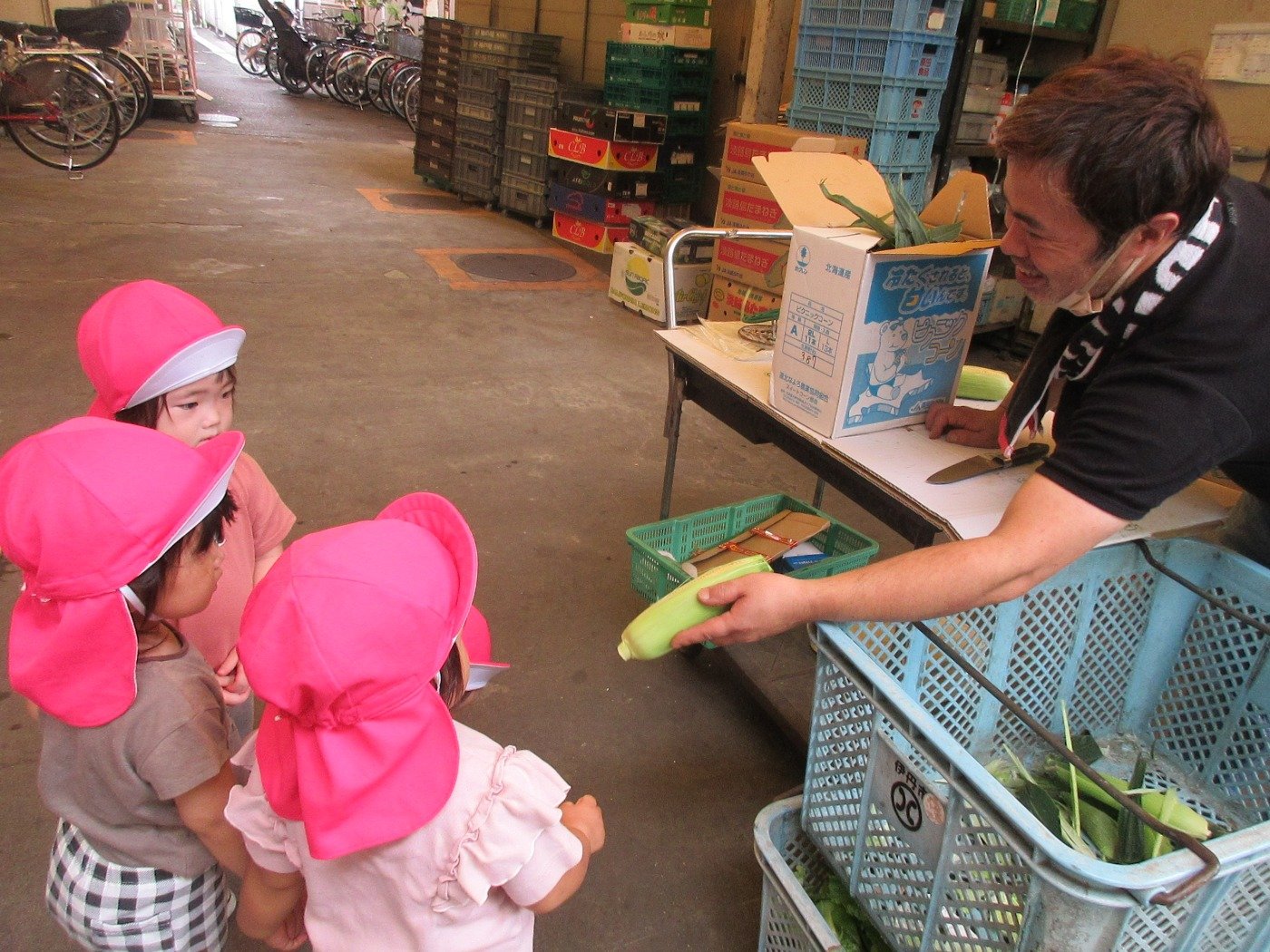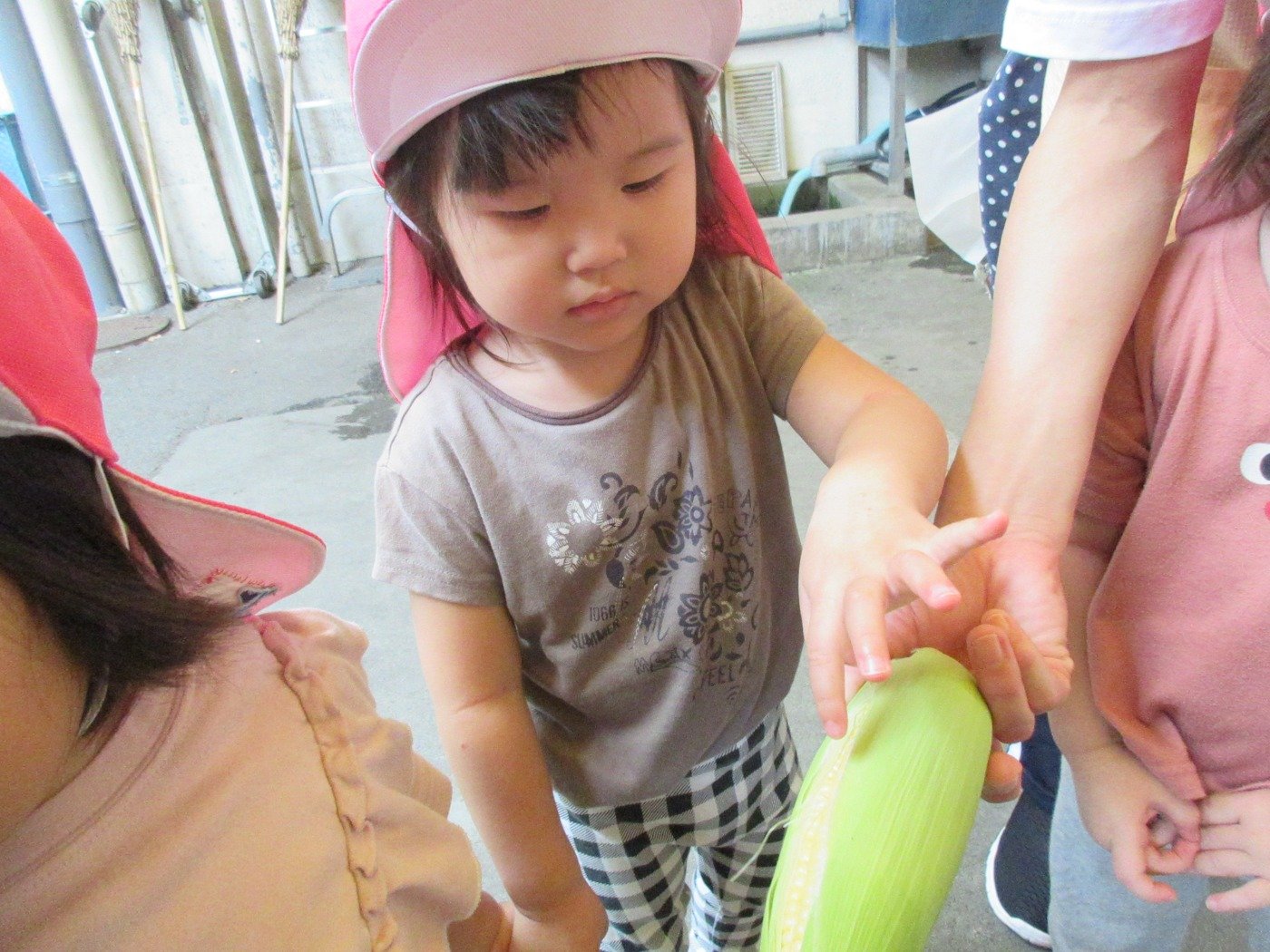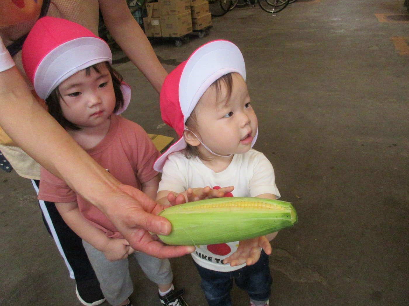 うさぎぐみさん ホームブログ 2022.08.25 探索へ!! スーパーの方のご好意で お野菜を見せてもらいました。 うさぎぐみさん 「とうもろこしの皮むき」に参加したの 覚えてるかな? 旬のお野菜を見れて触れて 子ども達にとっても素敵な経験になったかな?