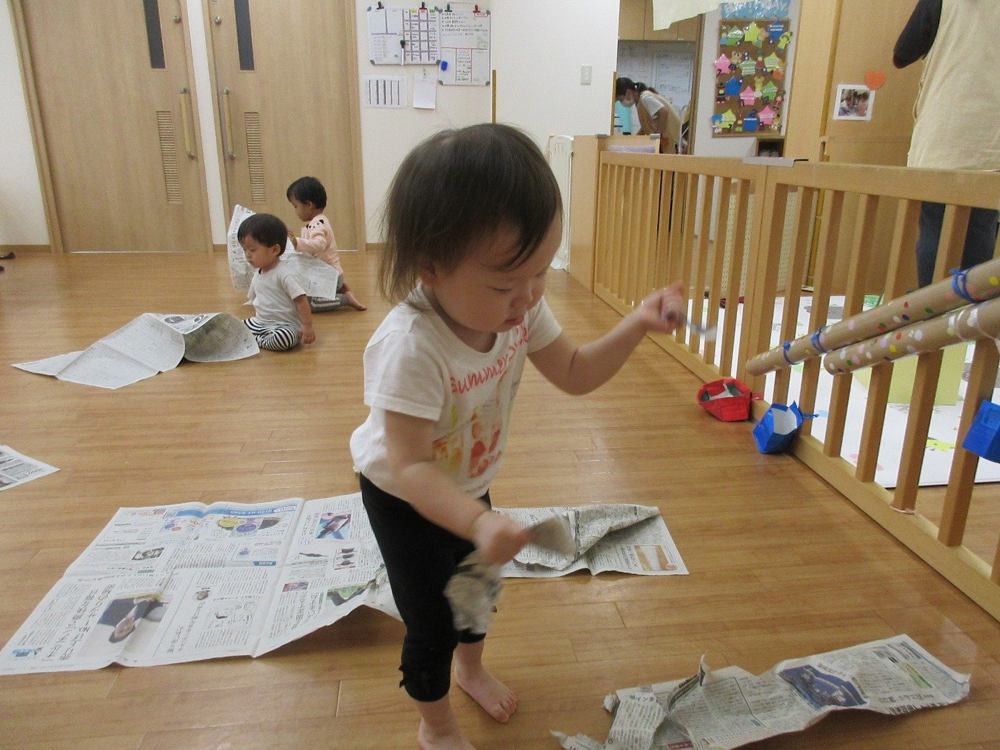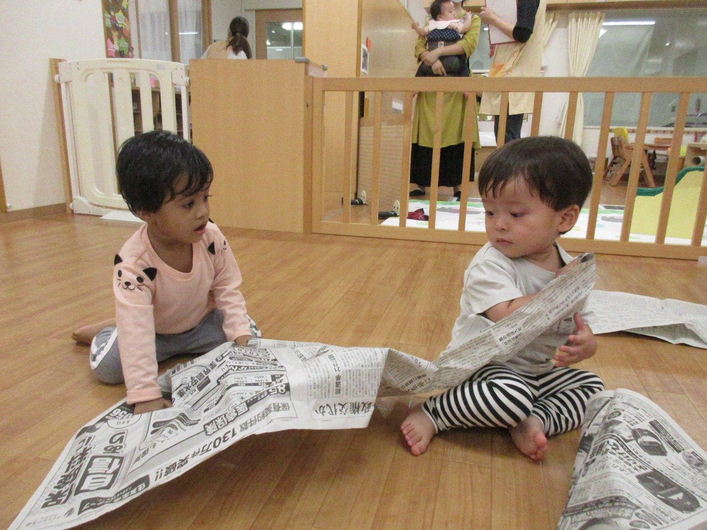 うさぎぐみさん ホームブログ 2022.10.03 今日から新しい友だちが、うさぎぐみさんに😊 11名になりました♫ ますます、とっても賑やかなうさぎさんになりそうです。 今日は、お散歩したりお部屋で新聞で遊びました。