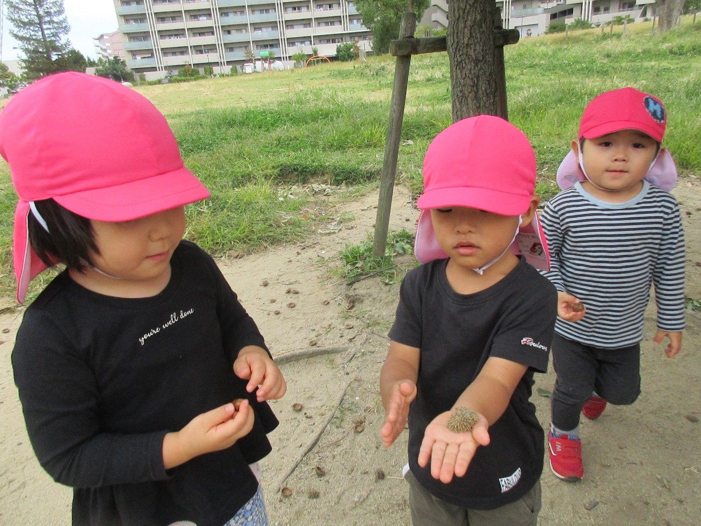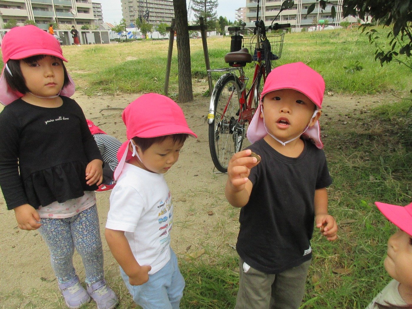くまぐみさん ホームブログ 2022.10.06 くまぐみさん 緑遊公園まで「どんぐり」を探しに出発!! 子ども達も嬉しそうにお話をしてくれていました。 帰ってくると 大きなどんぐりを見せてくれました。 秋の探索たのしもうね♬
