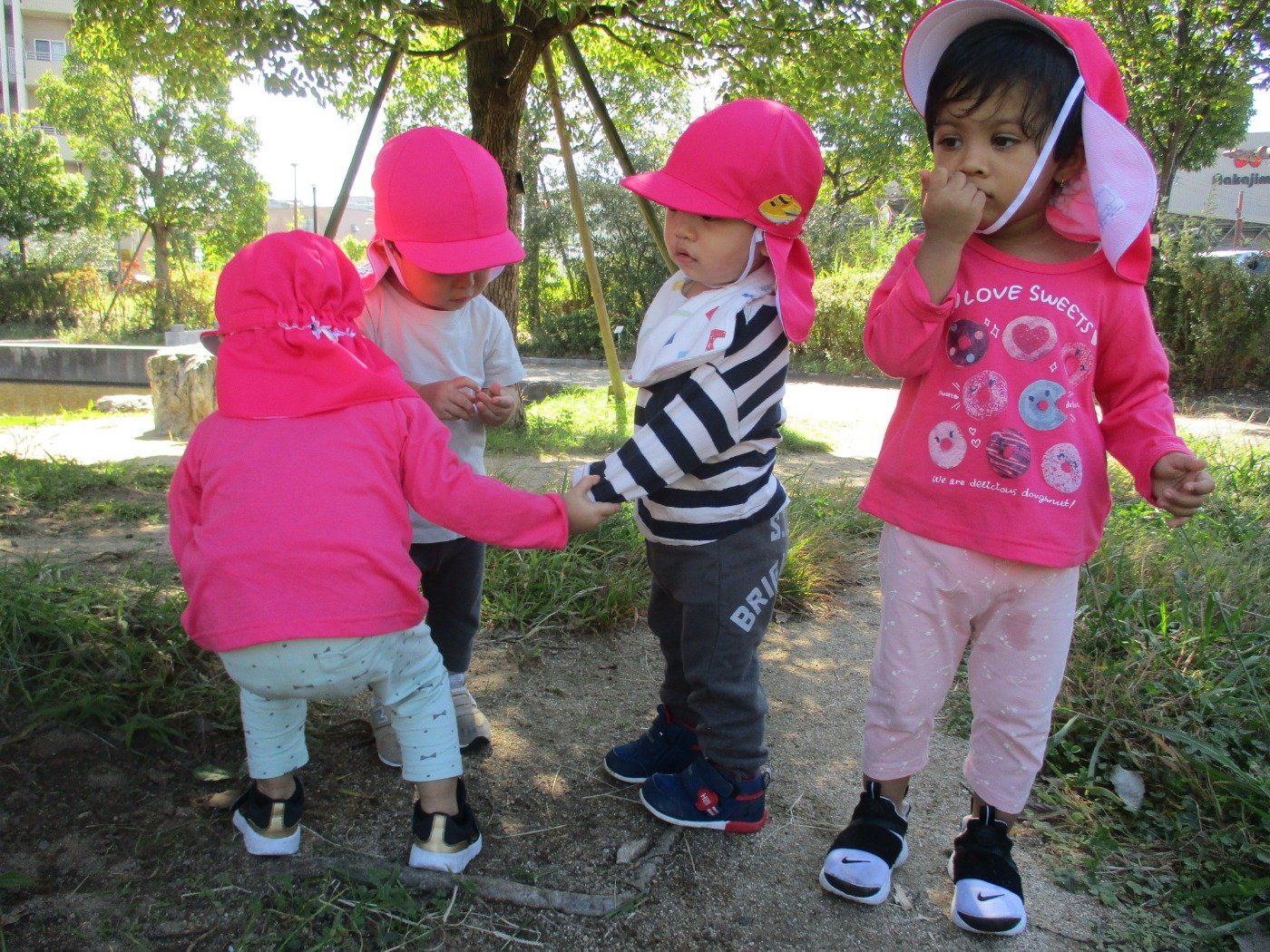 うさぎさん ホームブログ 2022.10.14 うさぎさんお部屋チームとお散歩チーム お散歩チームの行先は・・・・ 秋を探しに緑遊公園に😊 子ども達も、どんぐりを見つけたようで にこにこで帰ってきてくれました。