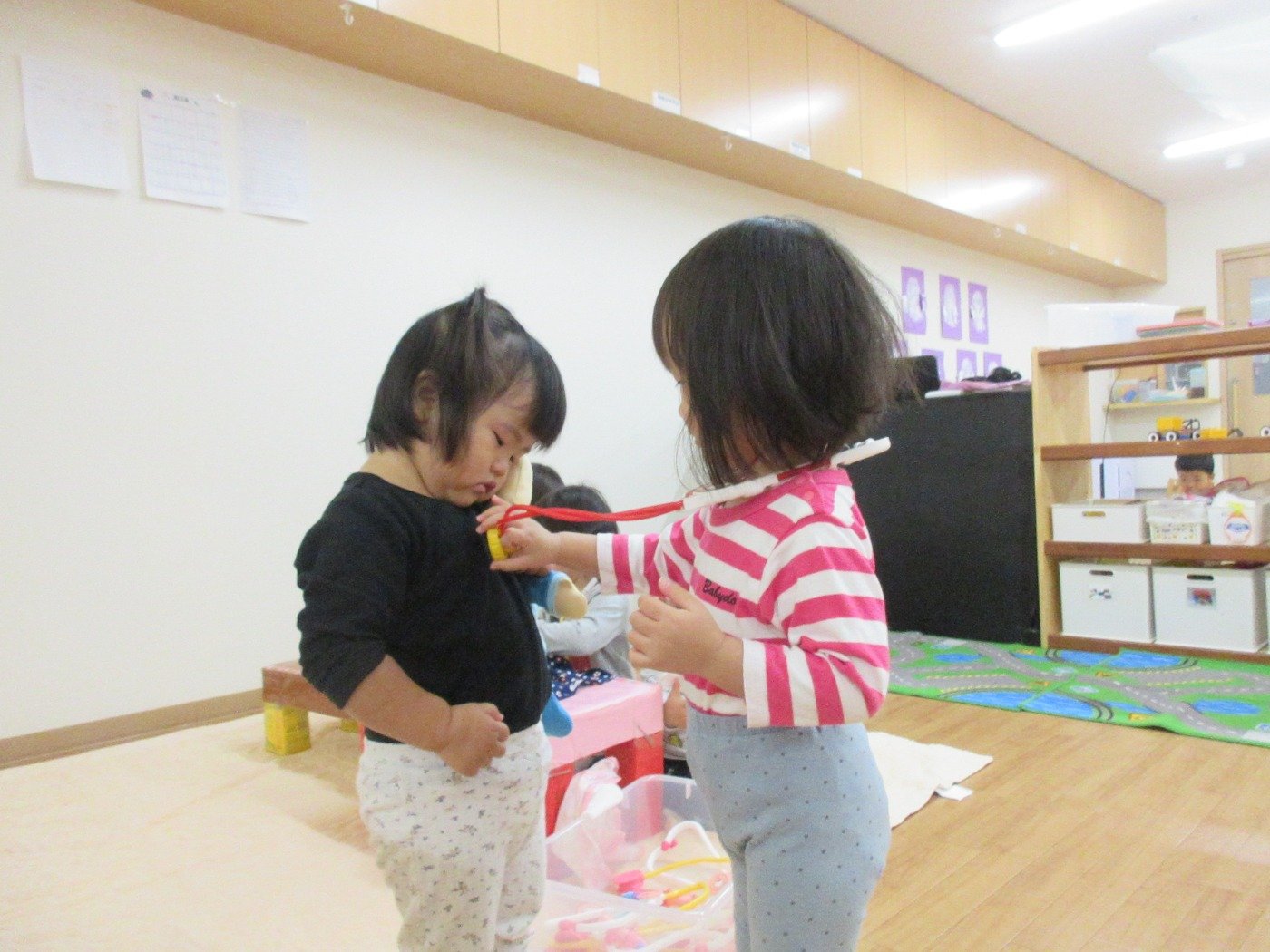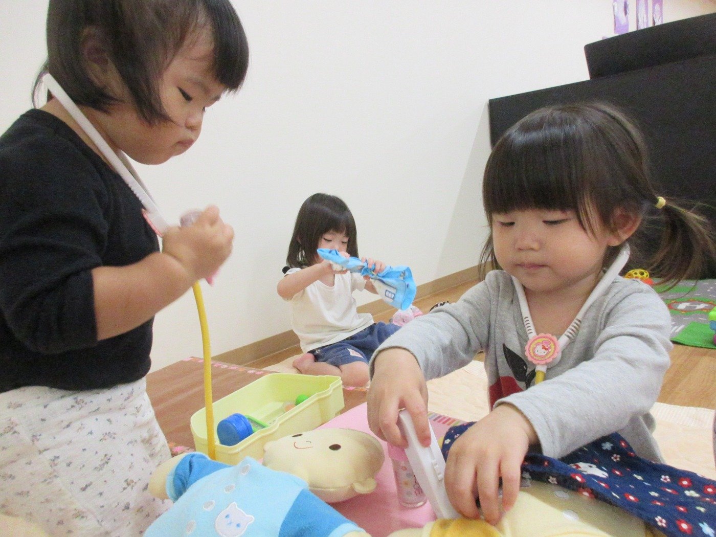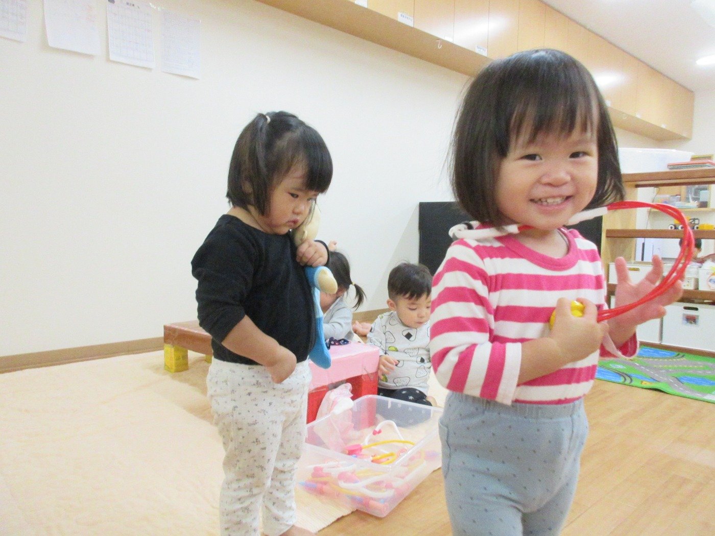 うさぎさん ホームブログ 2022.10.17 今日は、秋雨 子ども達も週明けでのんびりお部屋で お気に入りのお世話遊び お人形にハンカチを掛けてあげたり 小さな「まま」をしてる姿はとっても可愛かったです😊