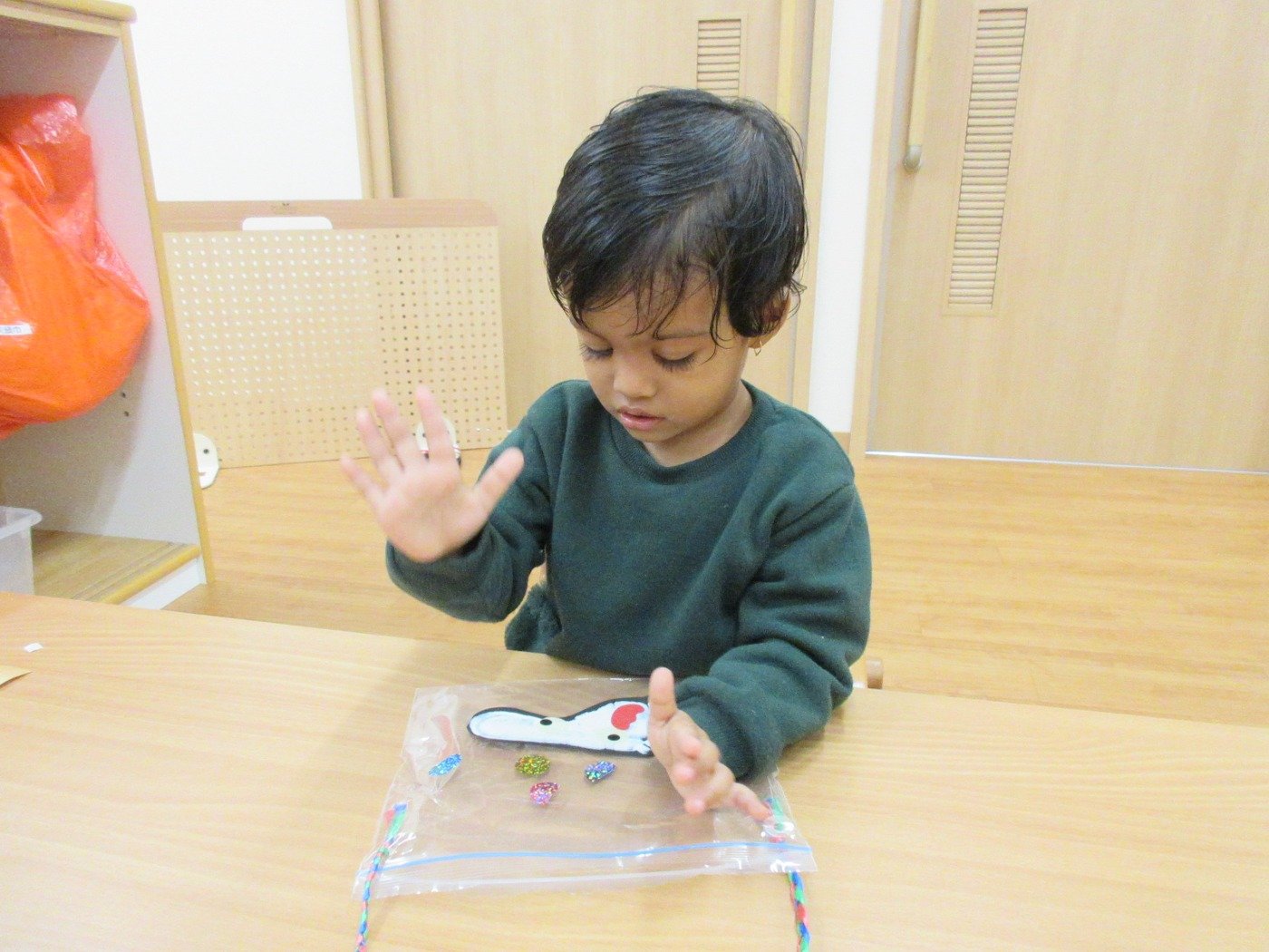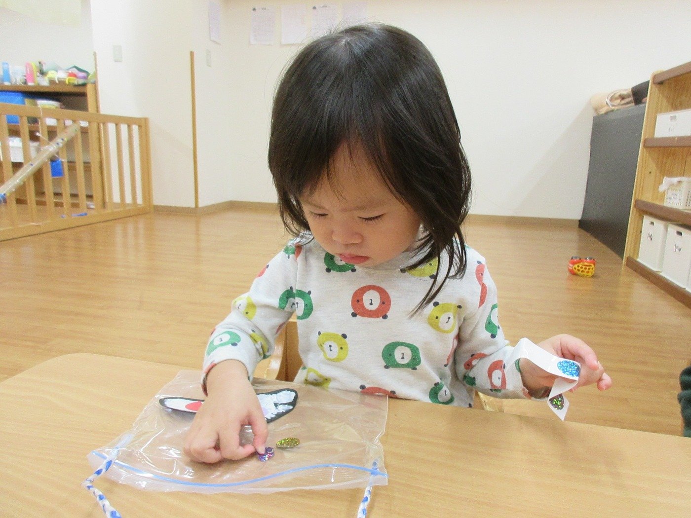 子ども達はお散歩バッグを作っていました😊