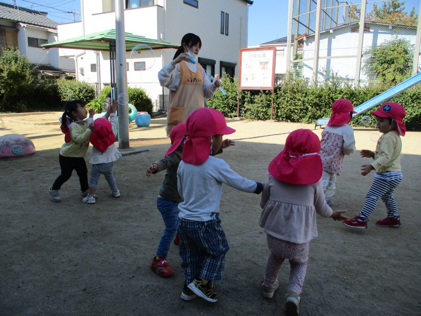 くまぐみさん ホームブログ 2022.10.28 体力もりもりの・・・くまぐみさん😊 たくさん遊んでもまだまだ、元気いっぱい! 今日は公園で「しっぽとり」をして遊んだくまぐみさん 帰ってくると、元気いっぱいの声で 「ただいまぁーー」 の声が嬉しい毎日です 来週は、ハロウィンもあるのでどんな変身になるのか とっても楽しみです♫