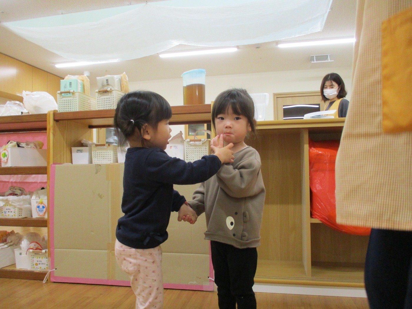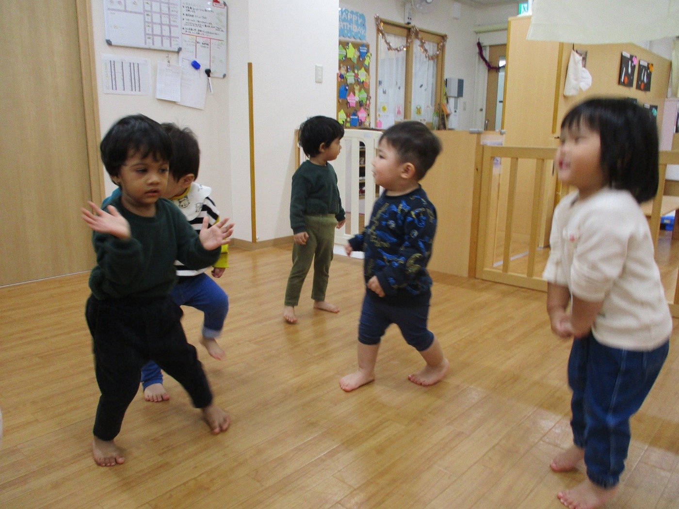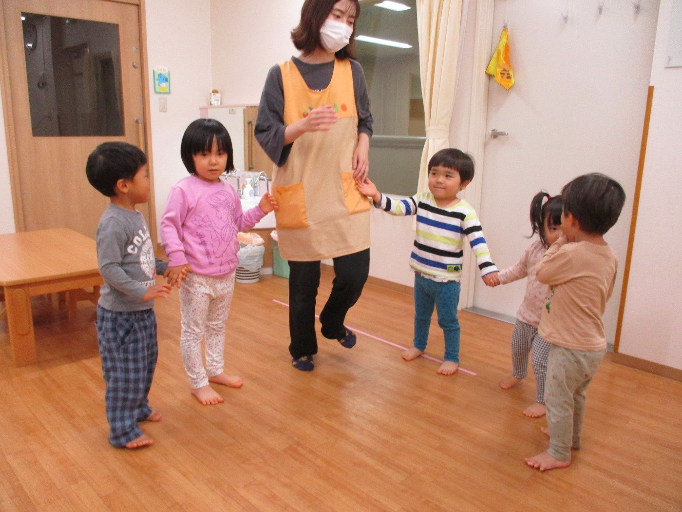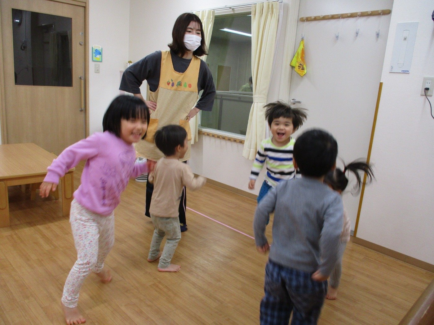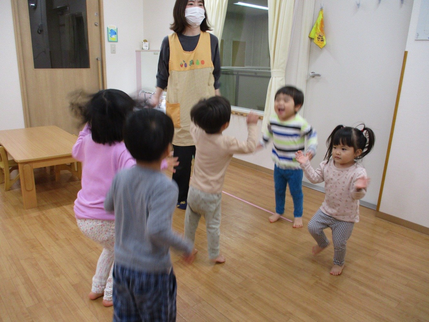 今日のこどもたち♬ ホームブログ 2022.11.01 外は☔がたくさん降ってますが 潮江の子ども達は元気もりもり!! くまぐみさん・うさぎぐみさんと一緒に てあそび たいそう をしました♫ ルールのある遊びを楽しんでるくまぐみさん リズムを楽しむうさぎぐみさん 子どもたちもとっても嬉しそう😊 げんきもりもりの、子ども達は たいそうもノリノリでしていました♫ たくさん遊んで、給食ももりもり 食べて夢の中の子ども達です♡