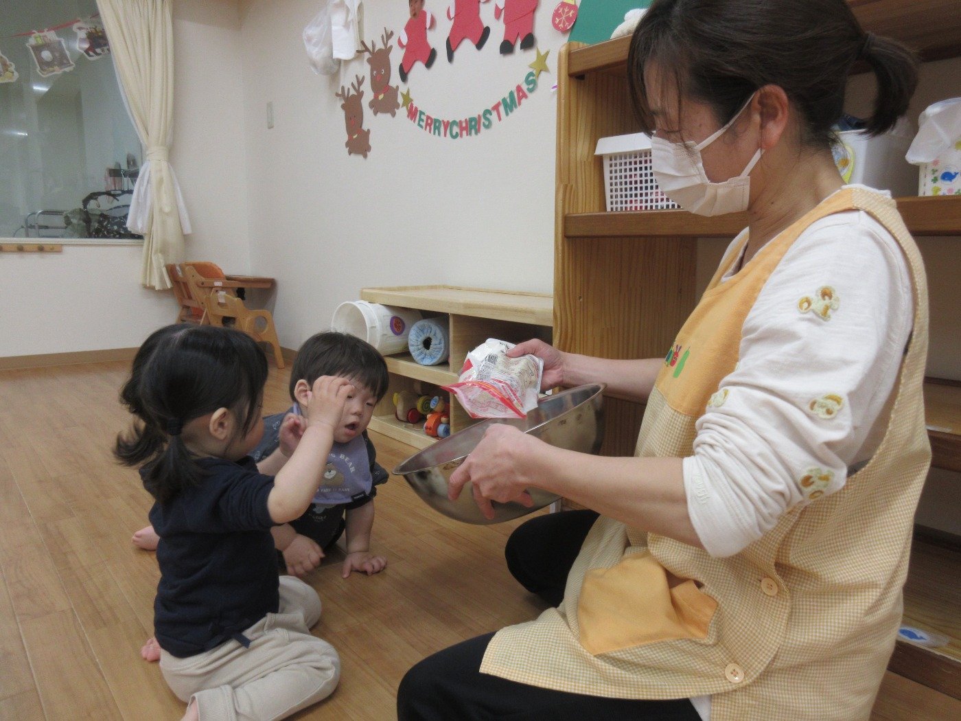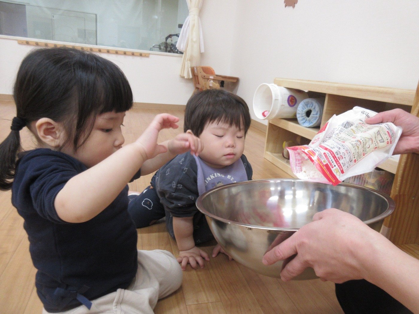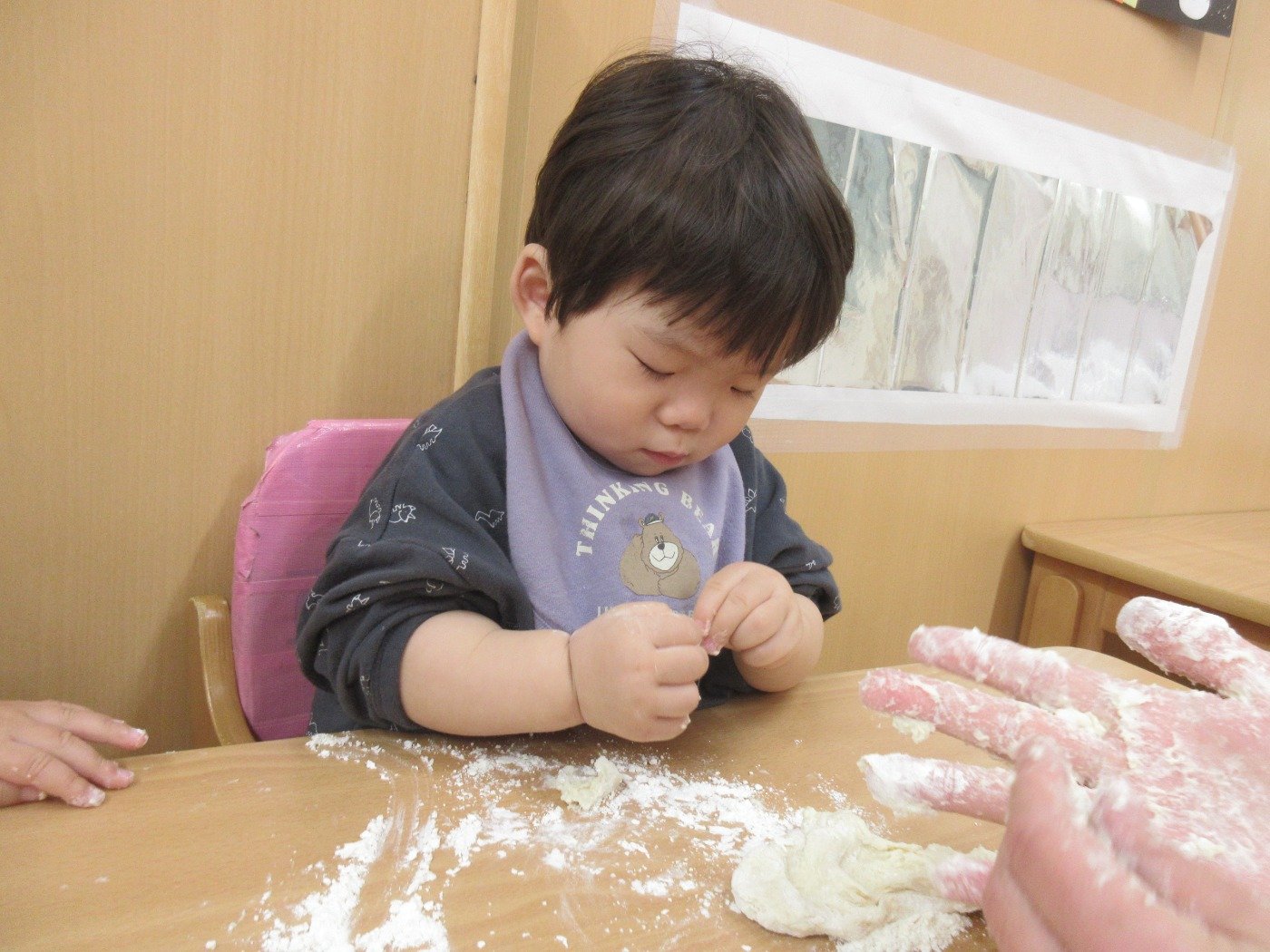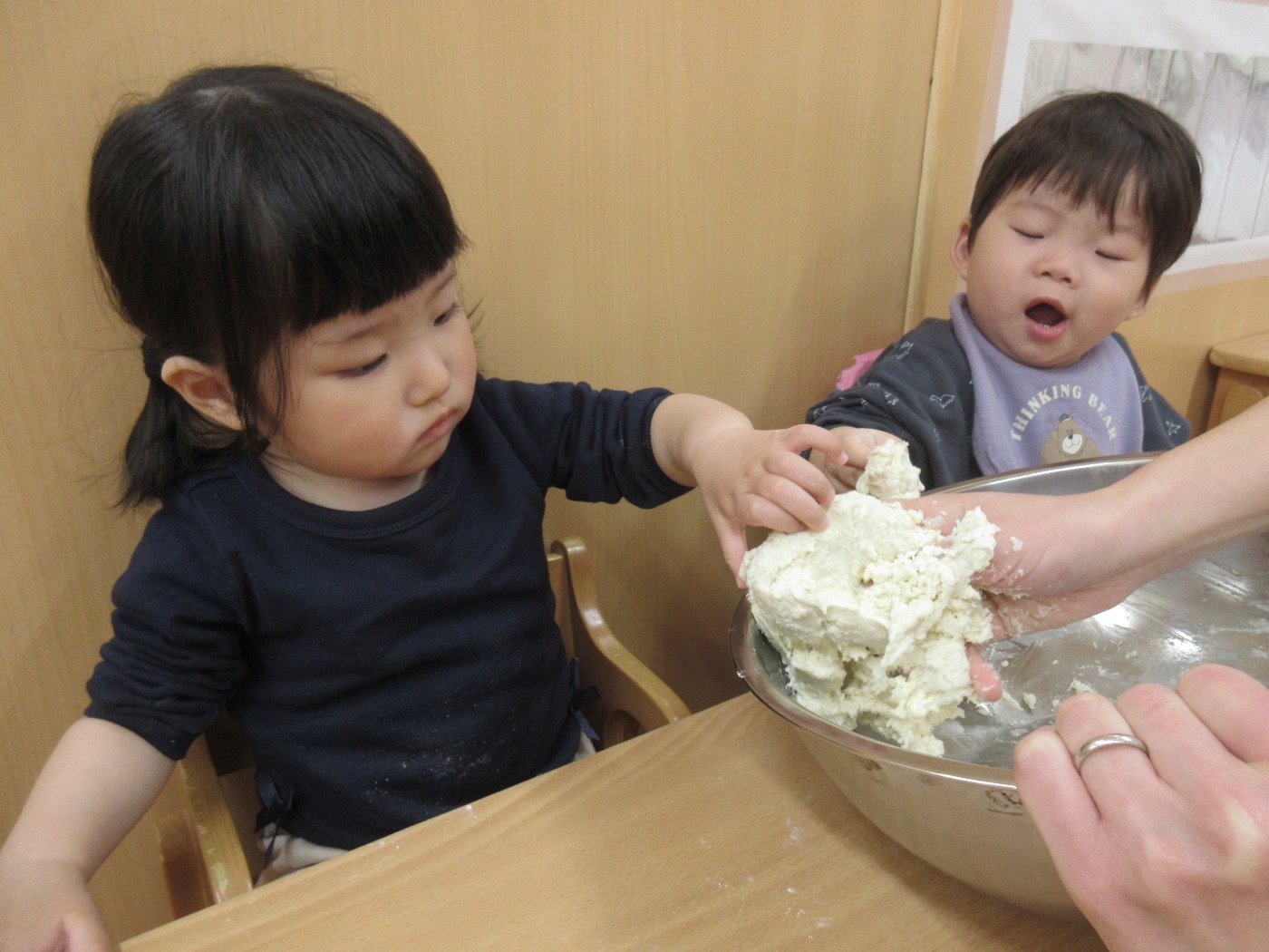 ひよこぐみさん ホームブログ 2022.11.22 ひよこさん 感触遊びをしました😊 こむぎこ粘土 子ども達は、こむぎこ粘土より ボールが気になったようす 粘土も指先で触ってみて 楽しみました 今は、自分で 掴み食べの練習中 ゆっくり ひよこさんのペースで楽しんで進めています 感触遊びも 手のひらから 五感を感じる遊び 子ども達は、どんな感じだったのかな?