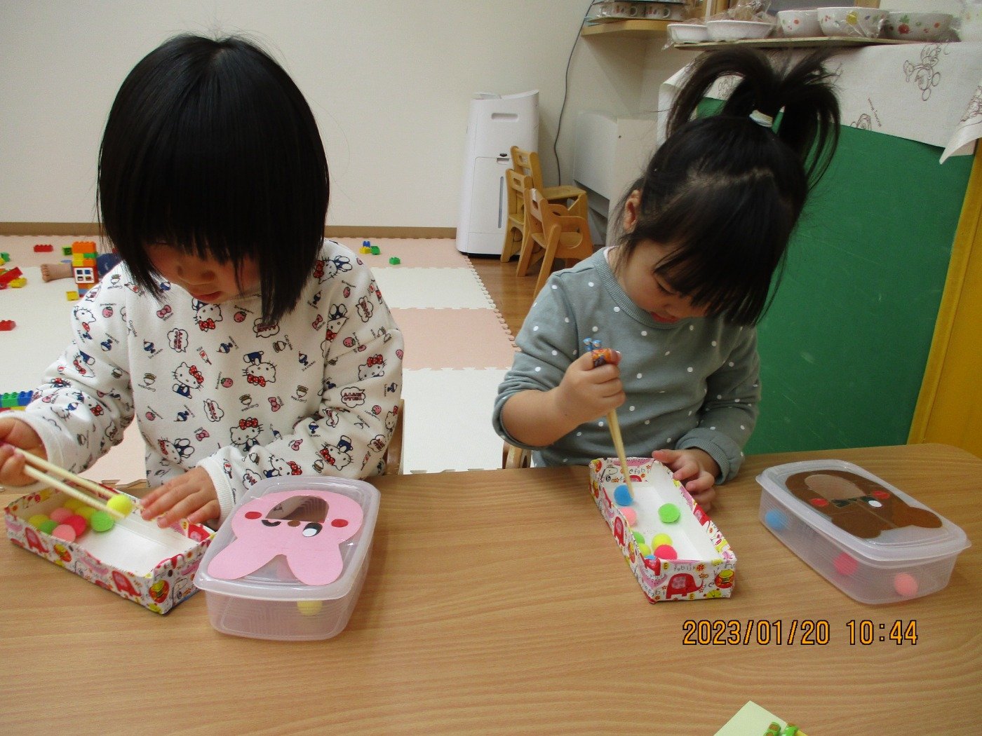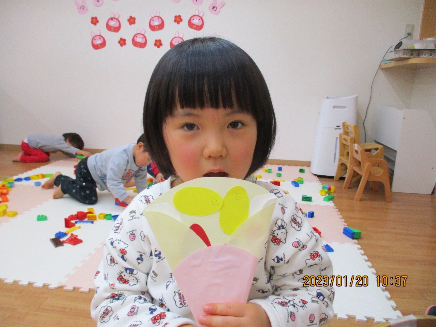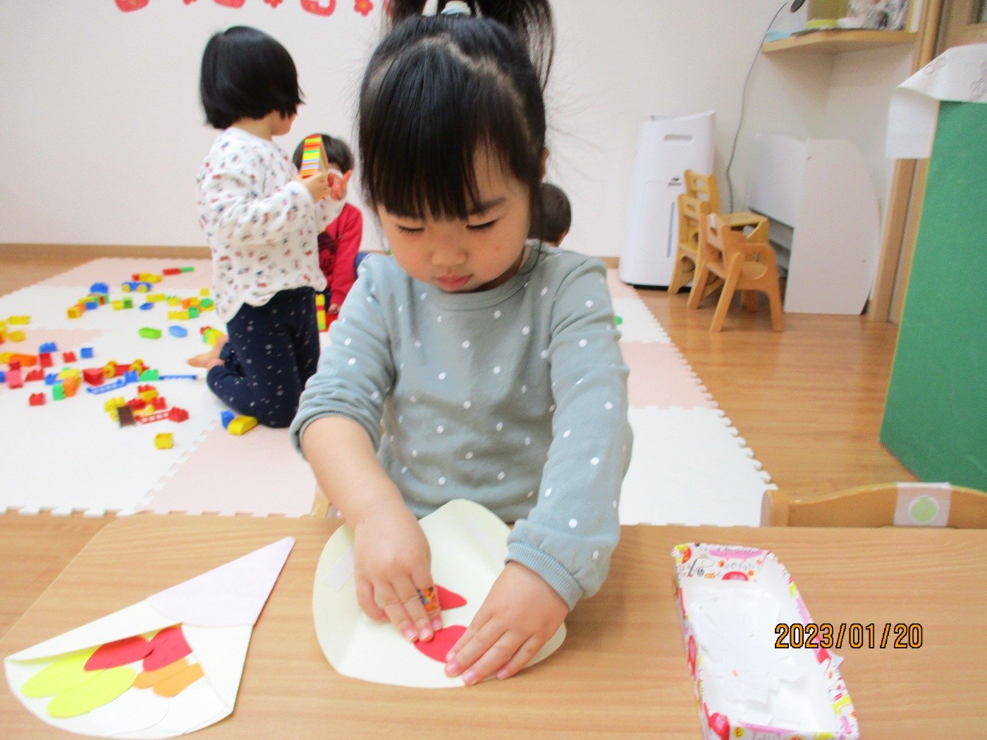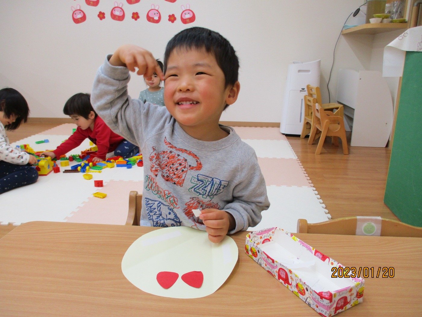 くまぐみさん ホームブログ 2023.01.20 くまぐみさん 今日はお部屋で製作😊 手先も器用になり、一人でできることもどんどん増え てきました。。。。 とってもおいしそうなものを🎵 子ども達は、お家で食べたことあるのかな? みんなで作れたら、楽しいね♡