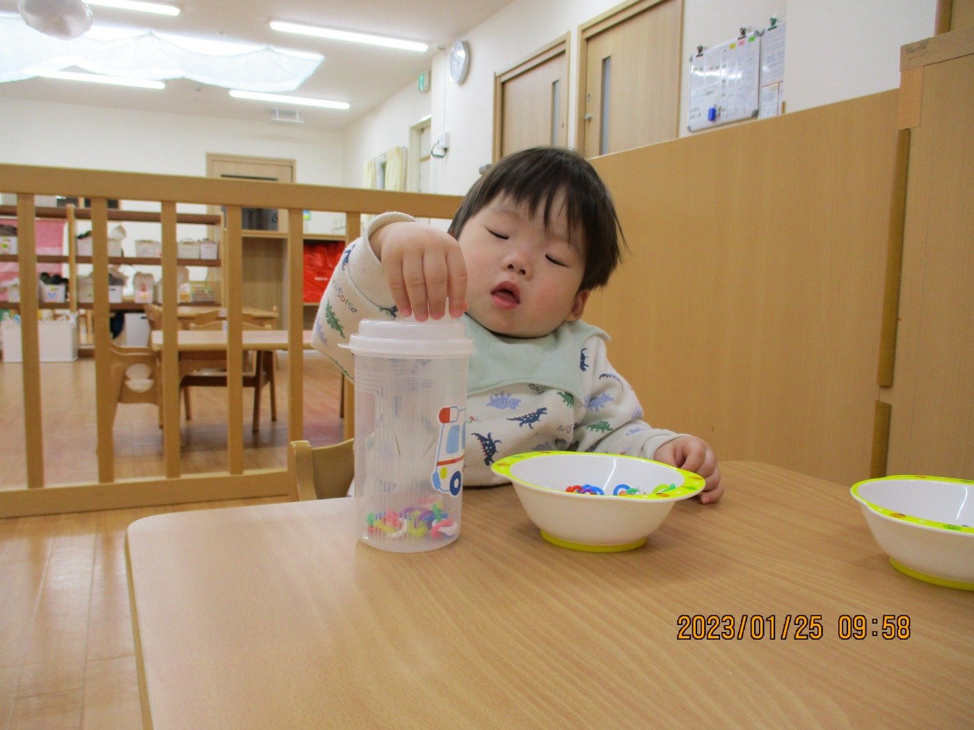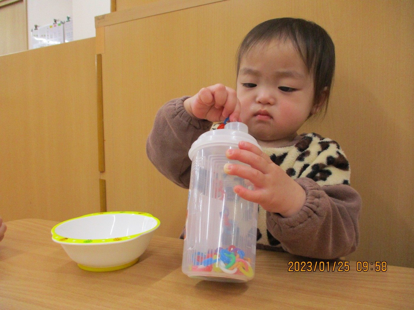 ひよこぐみさん ホームブログ 2023.01.25 ひよこさん 手先もとっても器用になりました😊一人で集中して 遊べる時間もどんどん長くなってきました。 もう少しで うさぎさんに進級♡ 集中して遊ぶ姿もとってもかわいいです