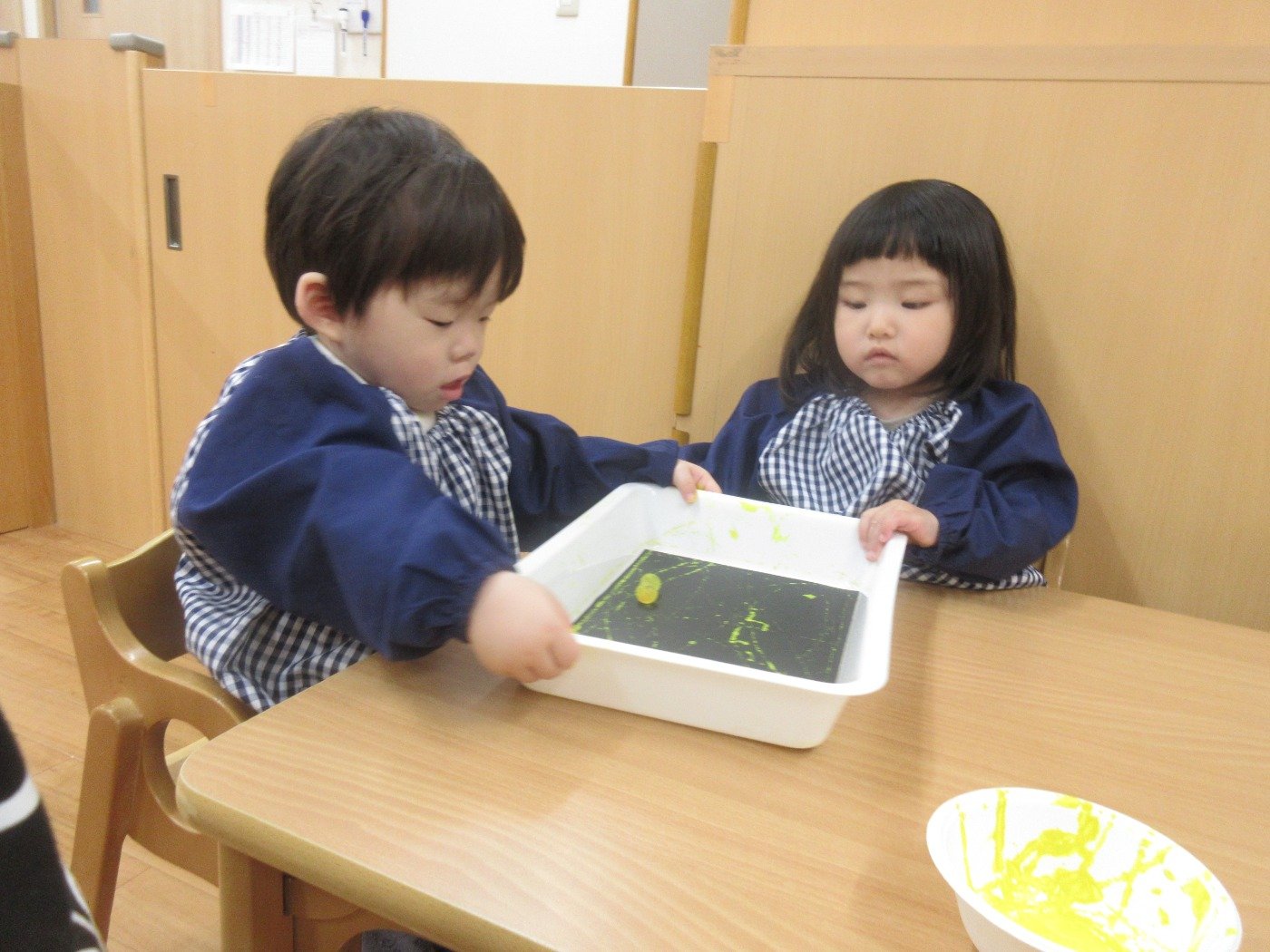 ひよこぐみさん ホームブログ 2023.01.26 ひよこさん 大きなスモッグ姿がとってもかわいい😊 ころころ・・・ ビー玉が転がると色がつくのを楽しみました。 ますます、活発になった ひよこさん♬ 興味ある所に よちよち歩いたり ハイハイで移動 今度は、どんなことに興味を持つのかな?