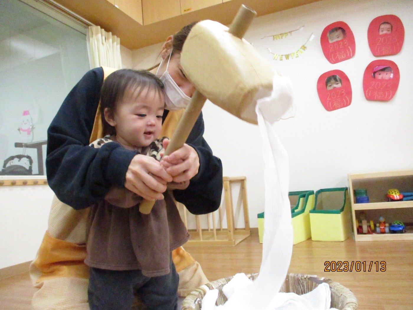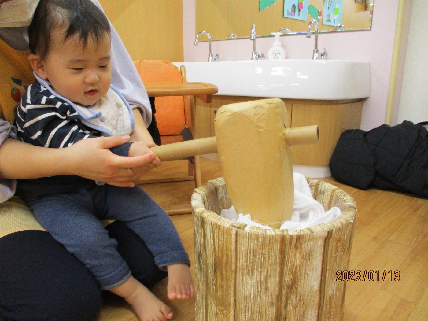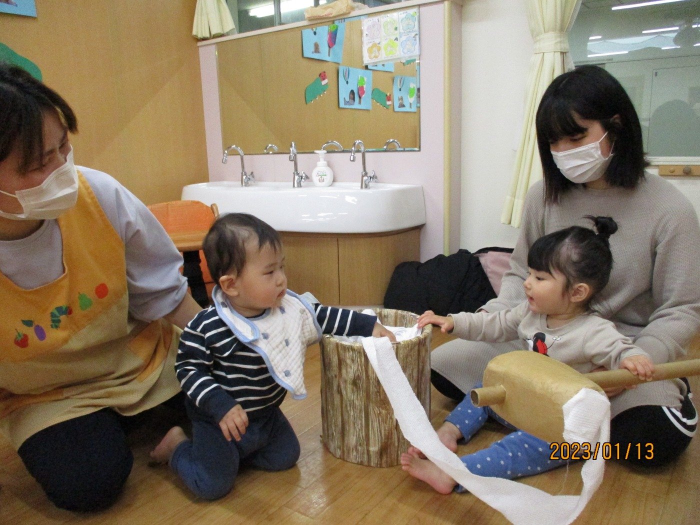 子ども達と一緒に お正月の伝承遊び 「おもちつき」を