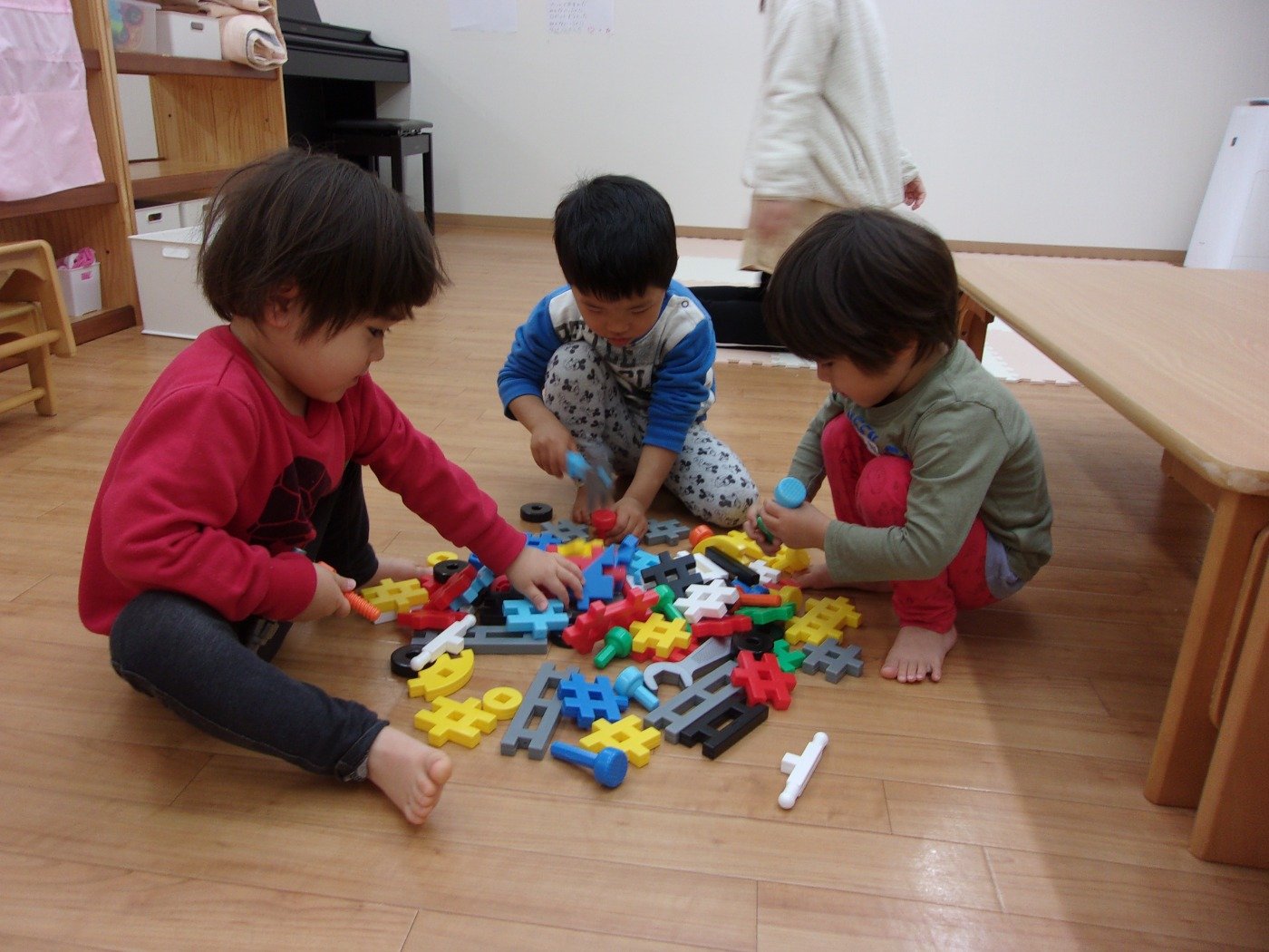 くまぐみさん ホームブログ 2023.02.01 くまぐみさん 新しいおもちゃがきました!! 子ども達が遊んでいるおもちゃと組み合わせて遊べる おもちゃ😊 子ども達も嬉しそうに遊んでいます くまぐみさんの年齢になると、 こうしたい、やってみたい! の気持ちもどんどん芽生えてくる時期 一番になってみたい・・・ その思いはとっても素敵で大切な経験になると思います。 少しずつ進級に向けて 一番もとっても大切な経験だけど お友だちにも「どーぞ」「いっしょにね」 の経験もたくさんできると嬉しいな♡と思います