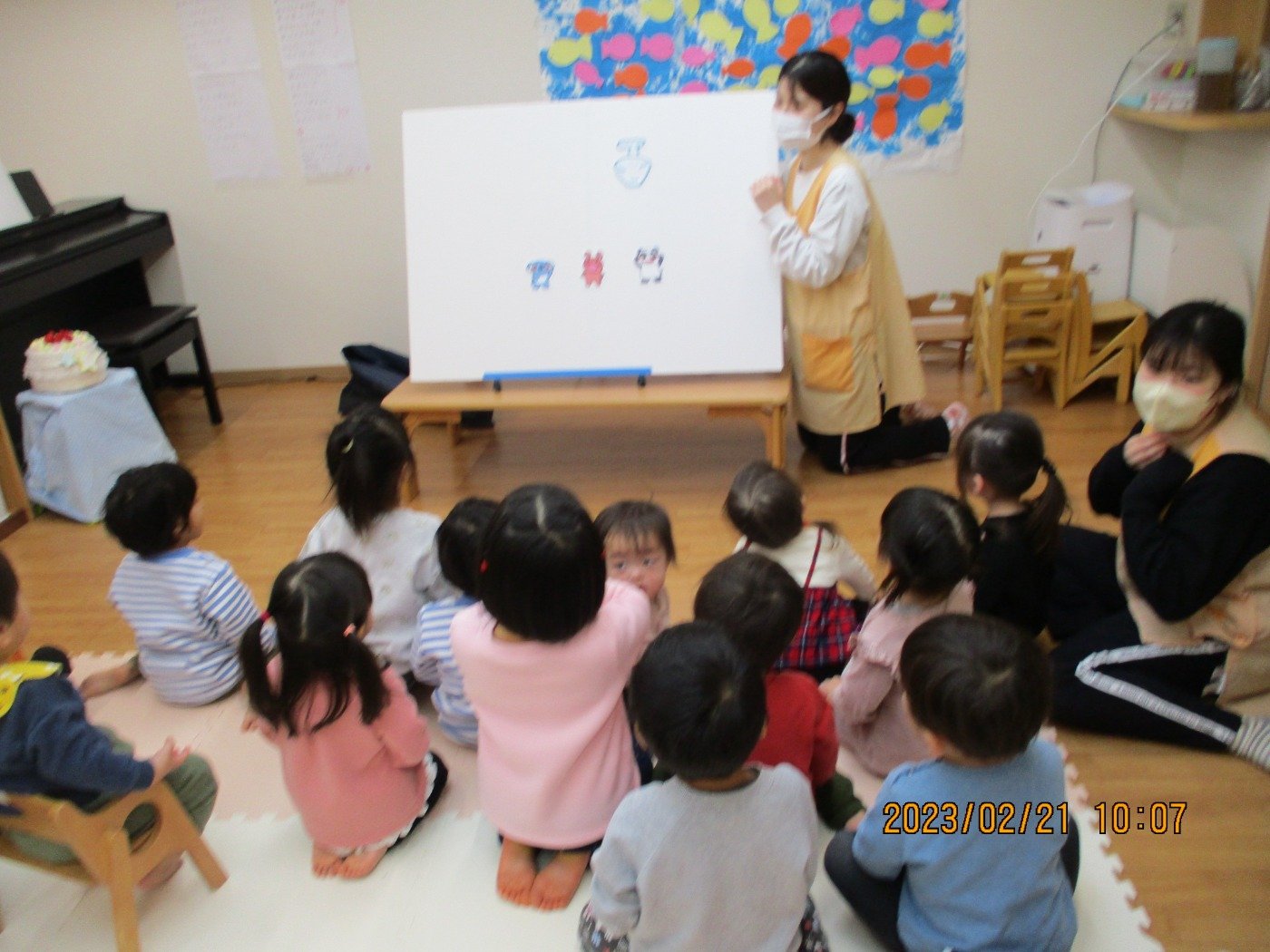 お誕生日会♫ ホームブログ 2023.02.21 2月生まれのお誕生日会♫ みんなで「おめでとう♡」のお歌のプレゼント くまぐみさんになると 名前 好きなたべもの 何歳 の質問に元気よく答えてくれていました😊 お誕生日メニューもとってもかわいい♡ 先生からのプレゼント パネルシアターも色々な動物や食べ物が登場しました♪
