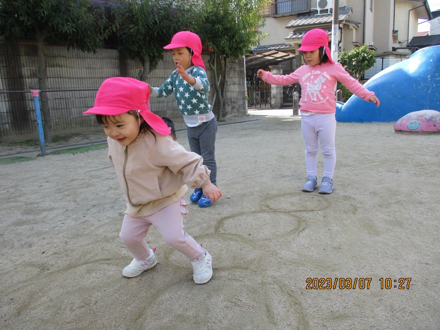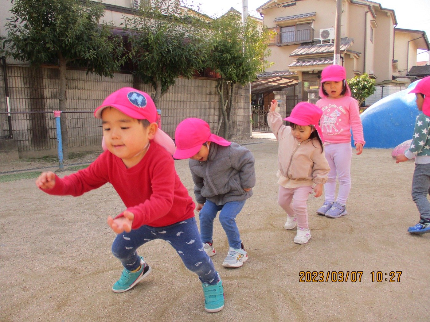くまぐみさん ホームブログ 2023.03.07 子ども達も 潮江園で過ごすのも後少しになりました。 子ども達も卒園式の練習をしたり 外遊びをして、体を沢山動かして遊んでいます😊 子ども達も動きも ダイナミック!! しっかり体力もついてきた くまぐみさん♬ 卒園まで、あと少し 沢山遊んで、過ごしたいと思います。