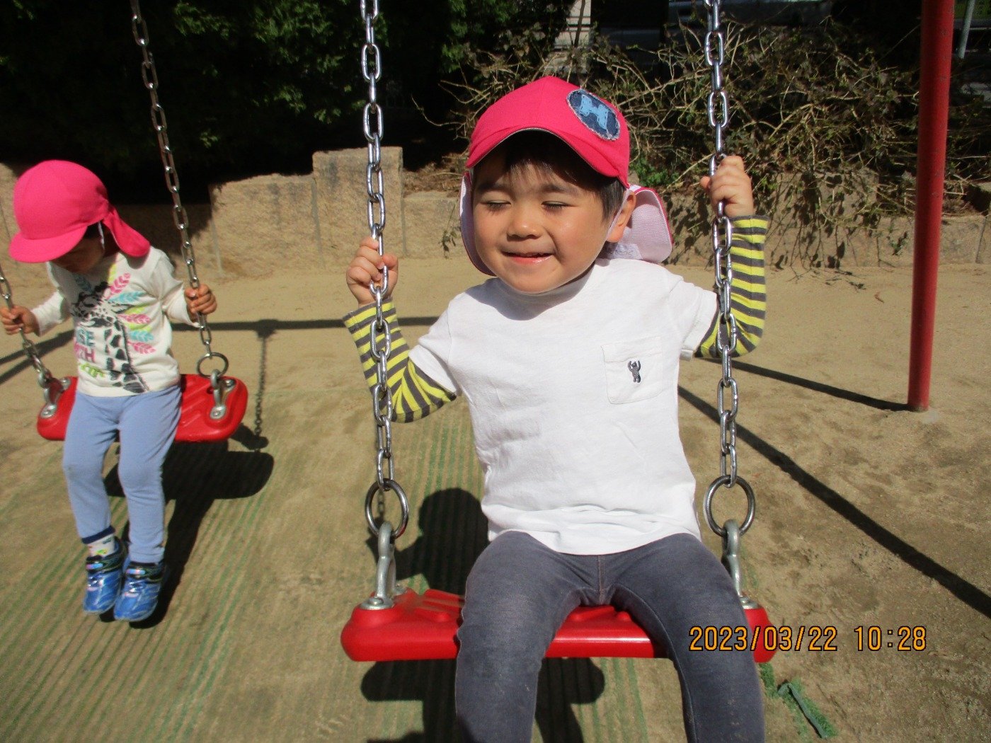 くまぐみさん ホームブログ 2023.03.22 今日は、春の陽気を感じる温かさ 子ども達は卒園式の練習が終わると 外遊びに出発!! 今週は卒園式 嬉しさと・・・寂しさと の気持ちです。 春は別れと、出会いの季節ですよね 子ども達にとっても 同じ園に進むお友だちもいれば お別れするお友だちも😢 潮江園で一緒に過ごす時間はあと少しですが 子ども達が楽しく安心で過ごせられるように と思っています。
