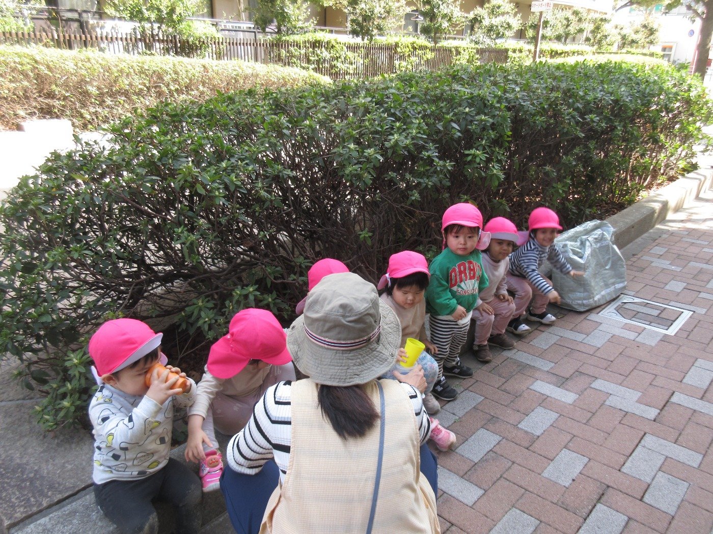 砂場あそびを楽しんだ後は、”お花見”🌸へ出発!