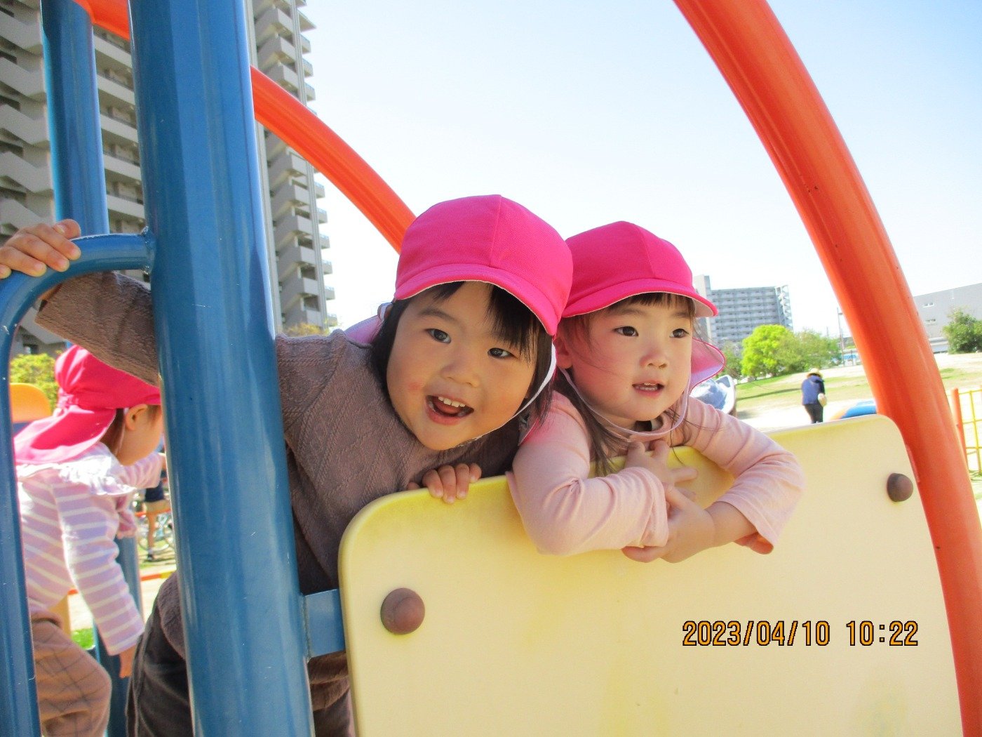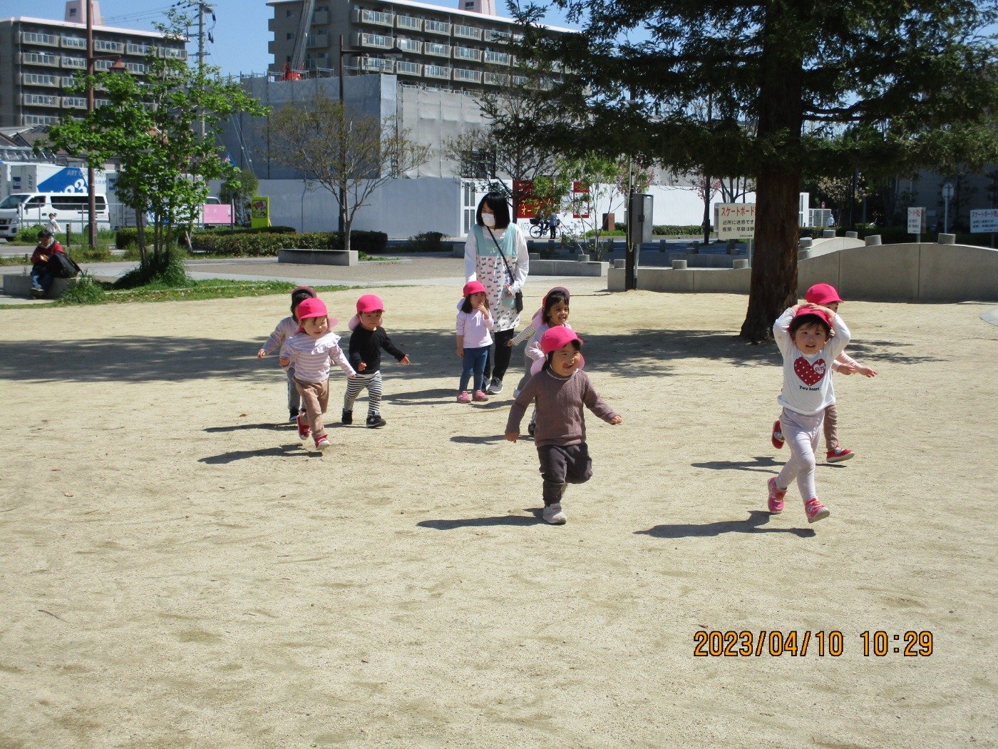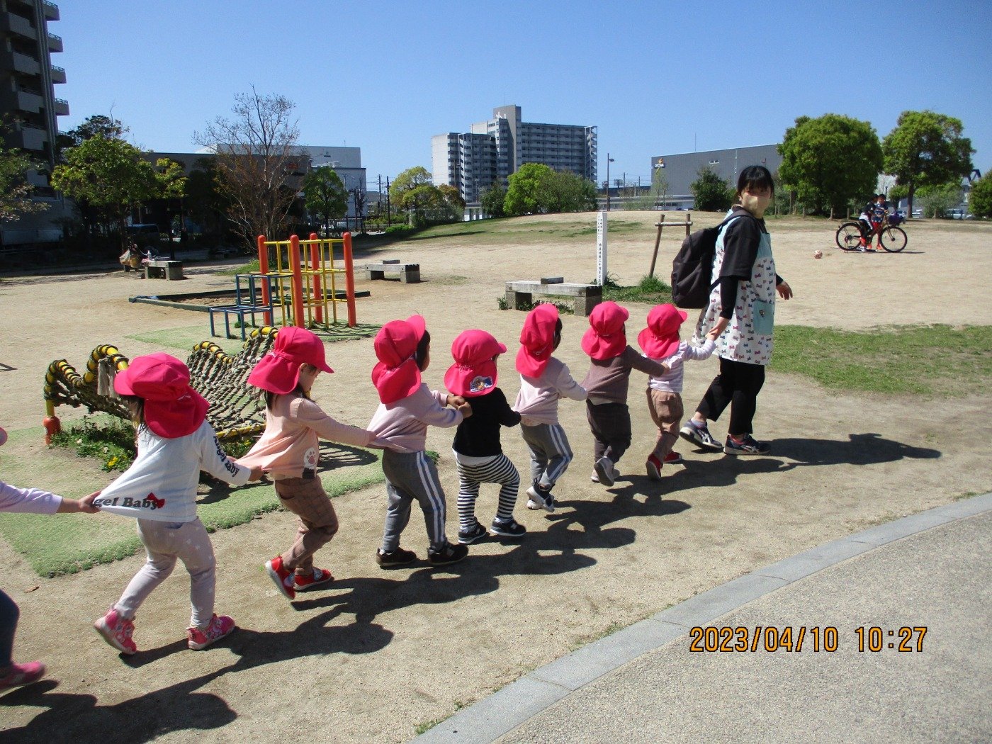 今日は、晴天になり気温も心地よく! 子ども達は元気よく公園にお出かけしました。