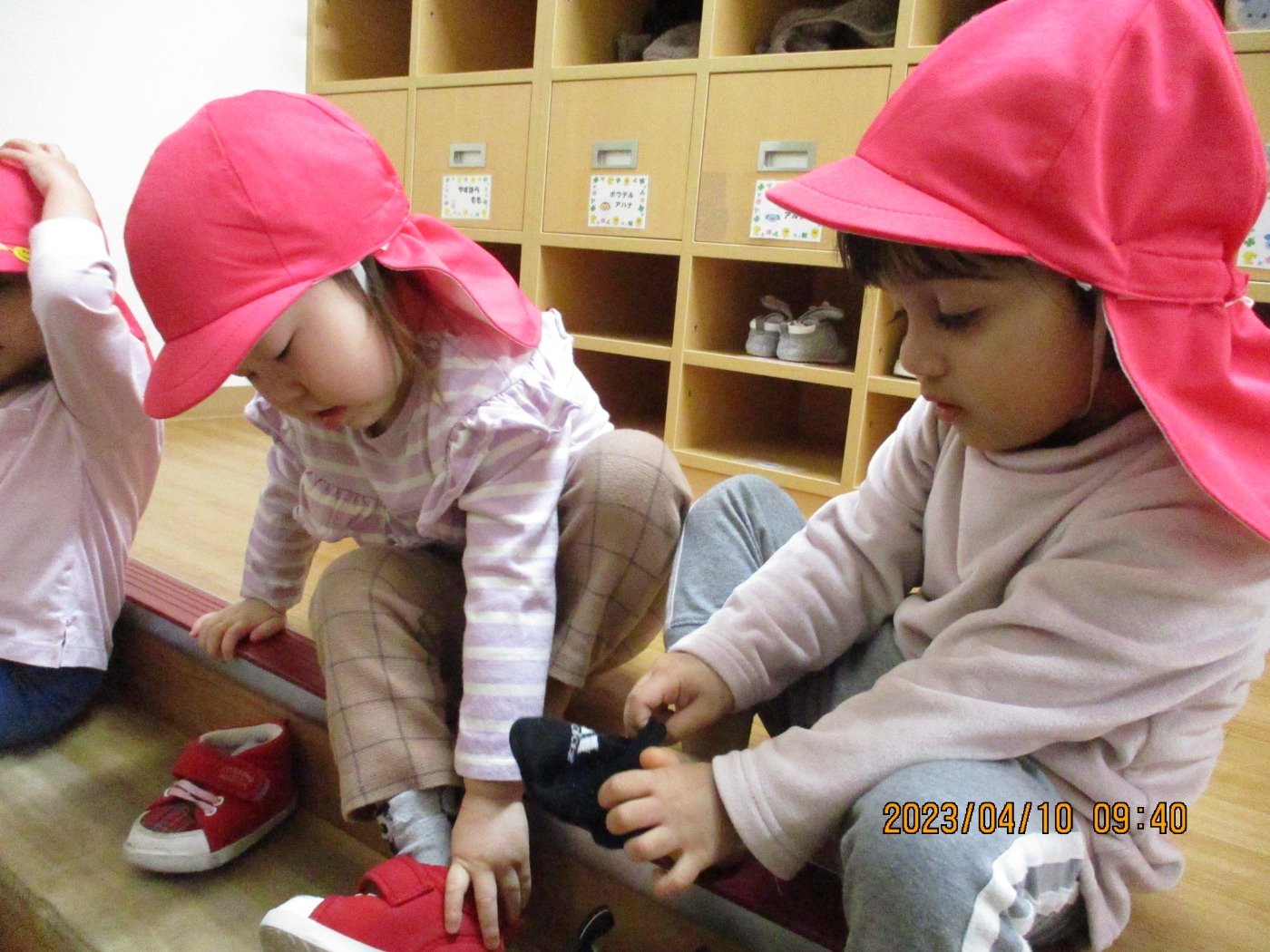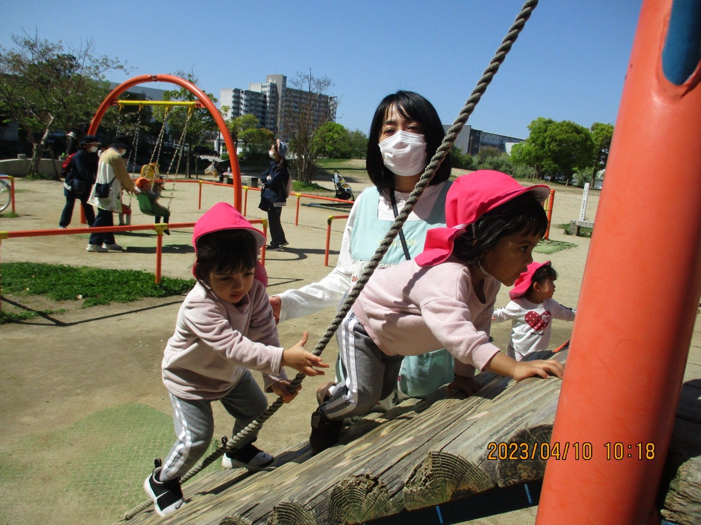足が落ちそうで、見ていてヒヤヒヤな遊具でしたが、お友だちが挑戦している姿を見て