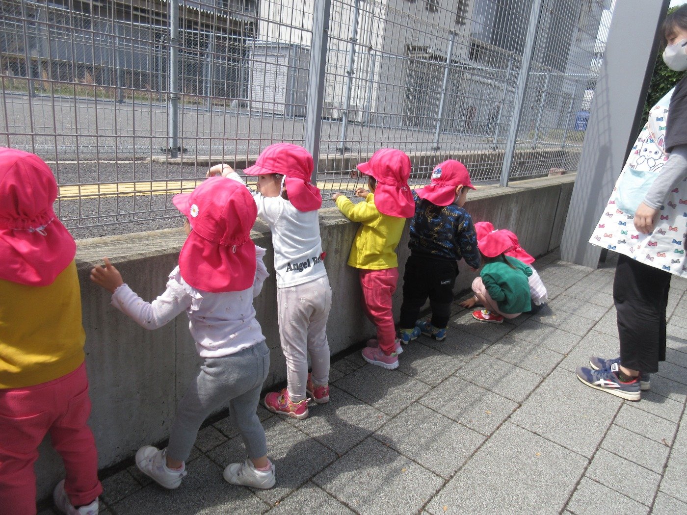 すっきりとしたお天気。今日くま組さんは、JR付近までお散歩に出かけることに。